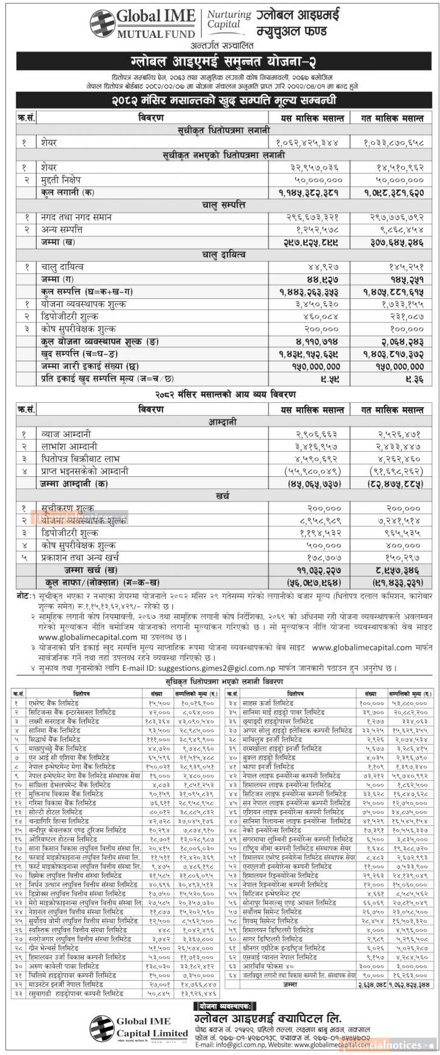 Global IME Capital has published "Global IME Samunnat Yojana -II" Net Assets Value till Mangsir, 208
