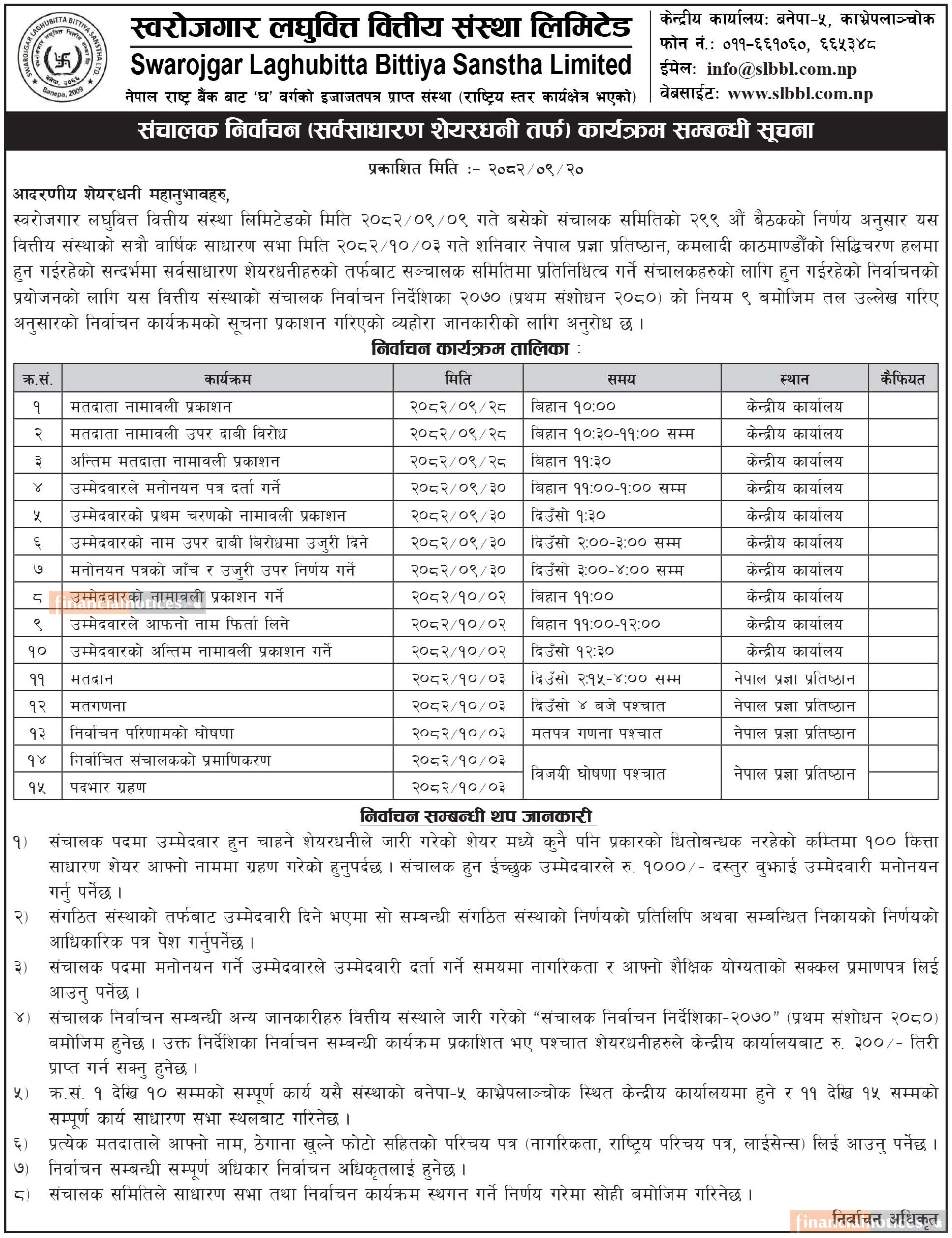 सर्वसाधारण सेयरधनीतर्फको सञ्चालक निर्वाचन कार्यक्रम सम्बन्धी सूचना