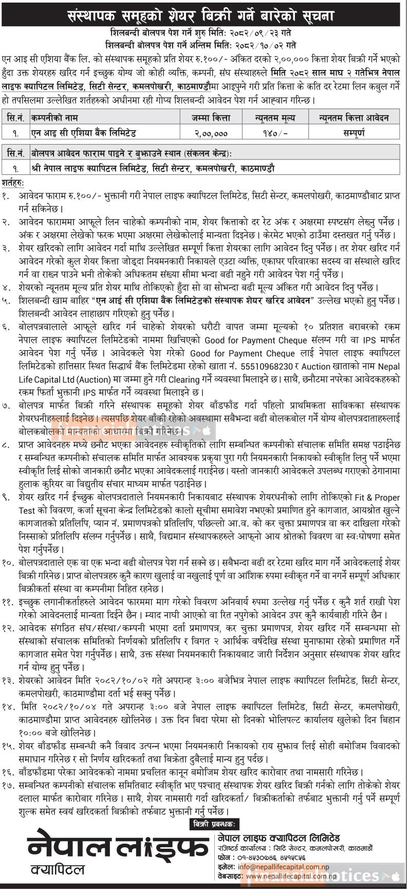 एनआईसी एशिया बैंक लिमिटेडको संस्थापक शेयर बिक्रीका लागि आवेदन आह्वान सम्बन्धी सूचना