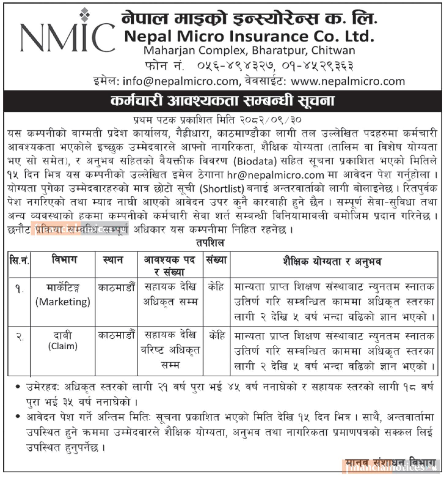 Published by Nepal Micro Insurance Company Limited (NMIC) on 2082-9-30