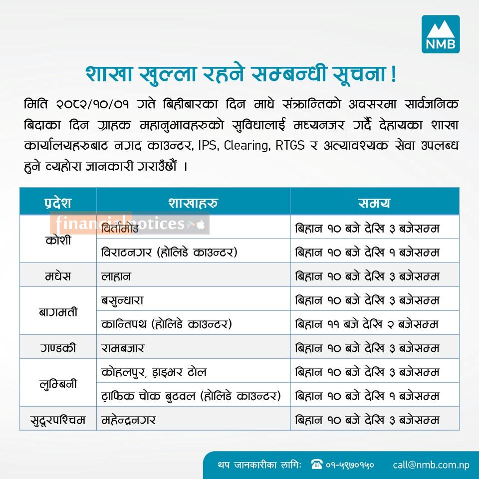 माघी पर्वको दिन एनएमबि बैंकको शाखाहरु खुल्ला रहने सम्बन्धी सूचना