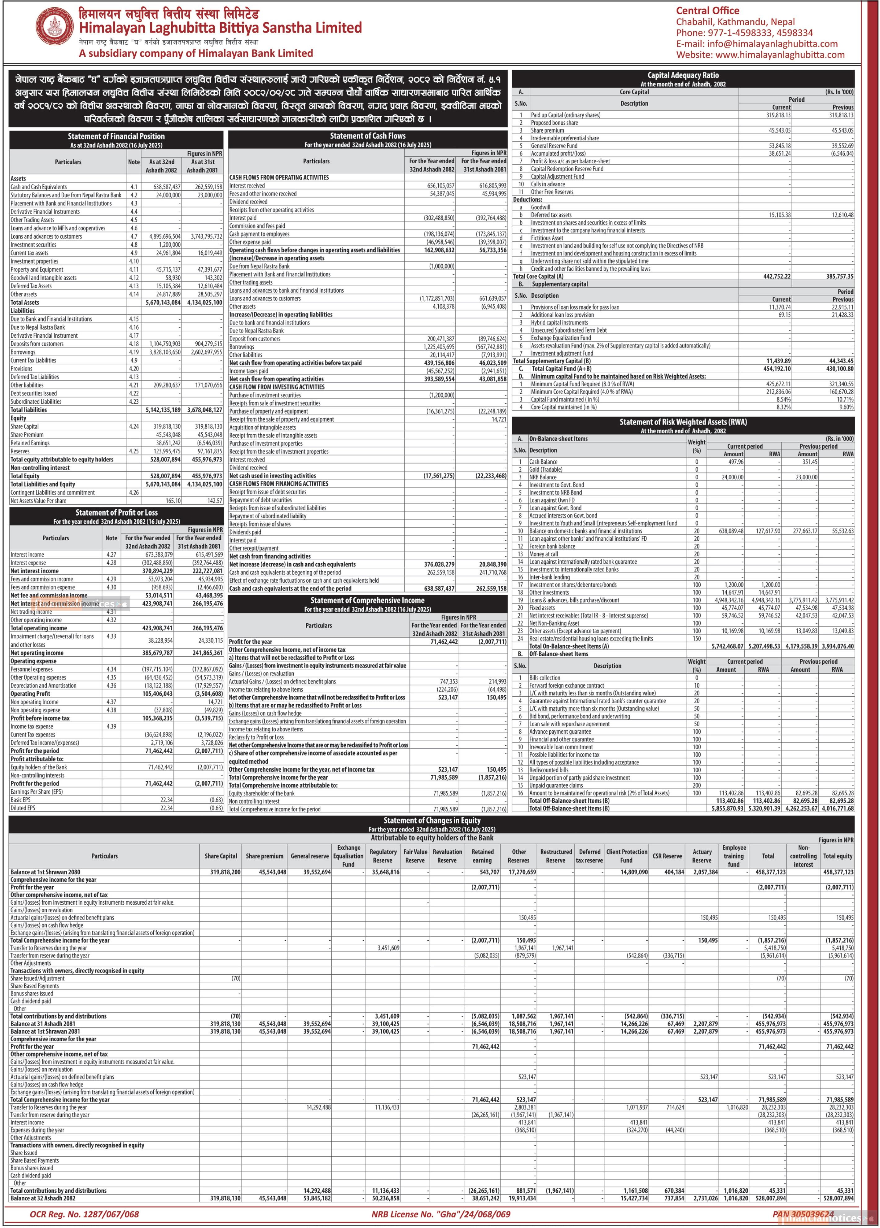 Himalayan Laghubitta has published its annual financial statement of the fiscal year 2081/82