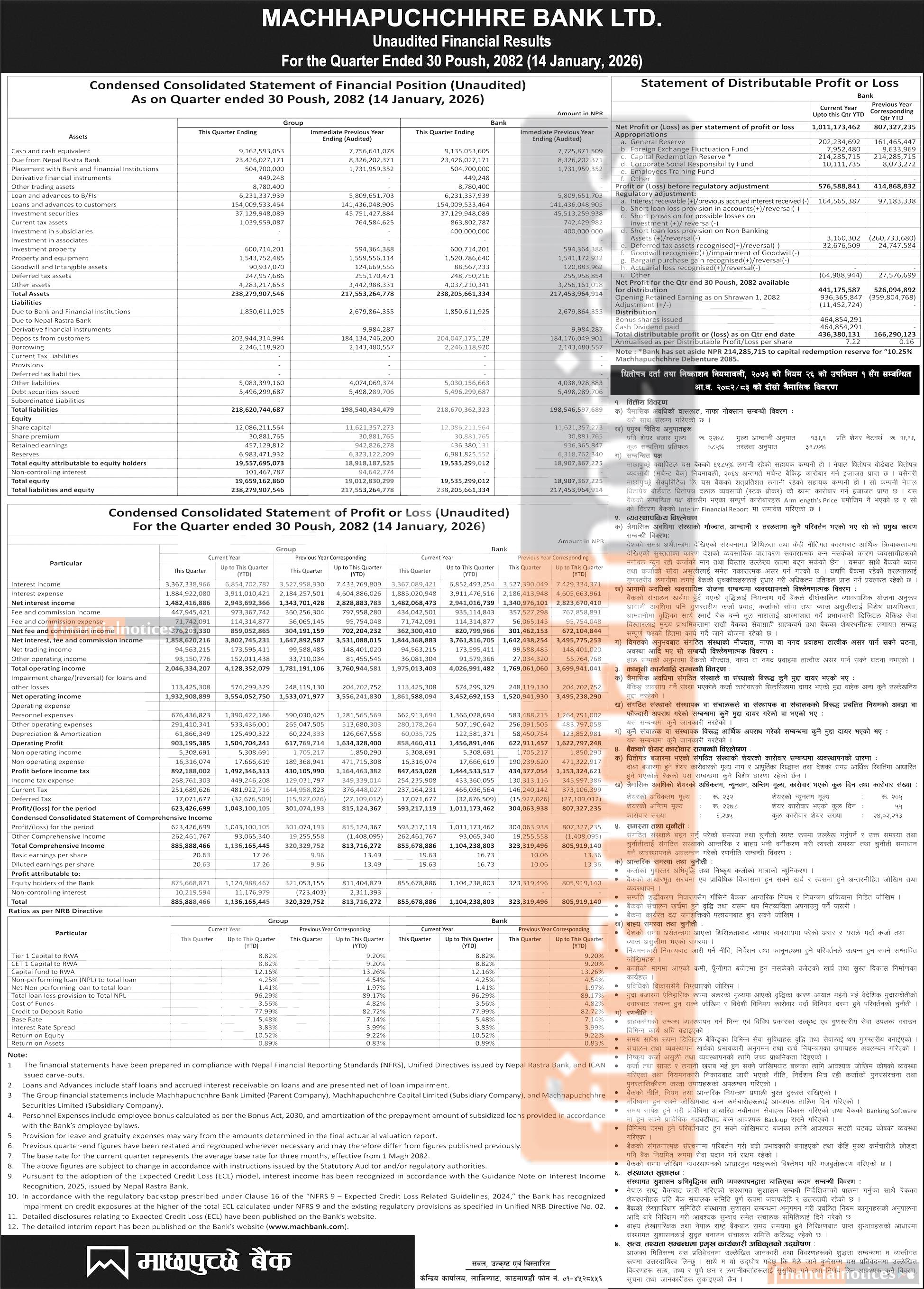 माछापुच्छ्रे बैंकको अपरिष्कृत वित्तीय विवरण प्रकाशित, खुद नाफा १ अर्ब १ करोड रुपैयाँ