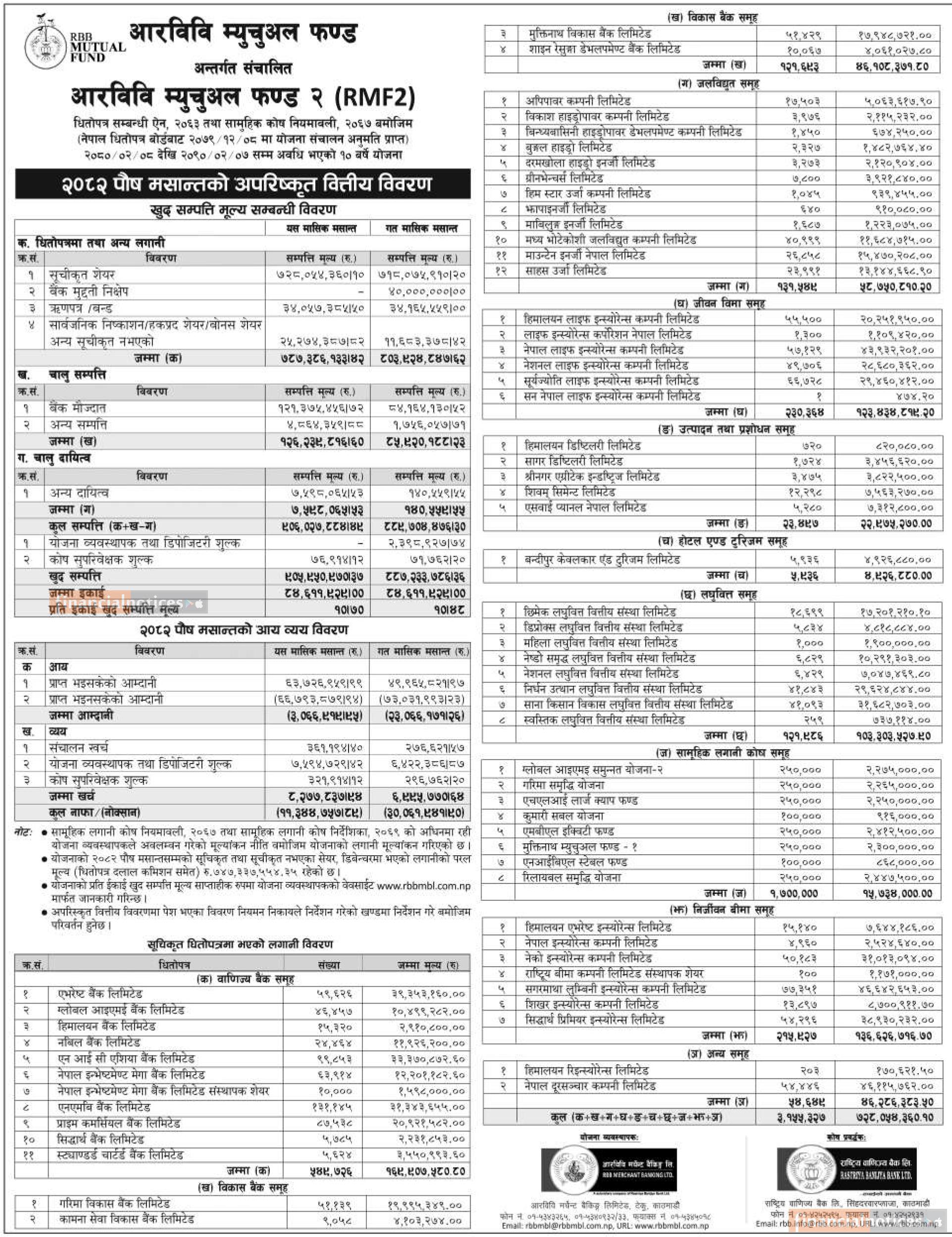 RBB Merchant Banking has published “RBB Mutual Fund-2” Net Asset Value till Poush, 2082