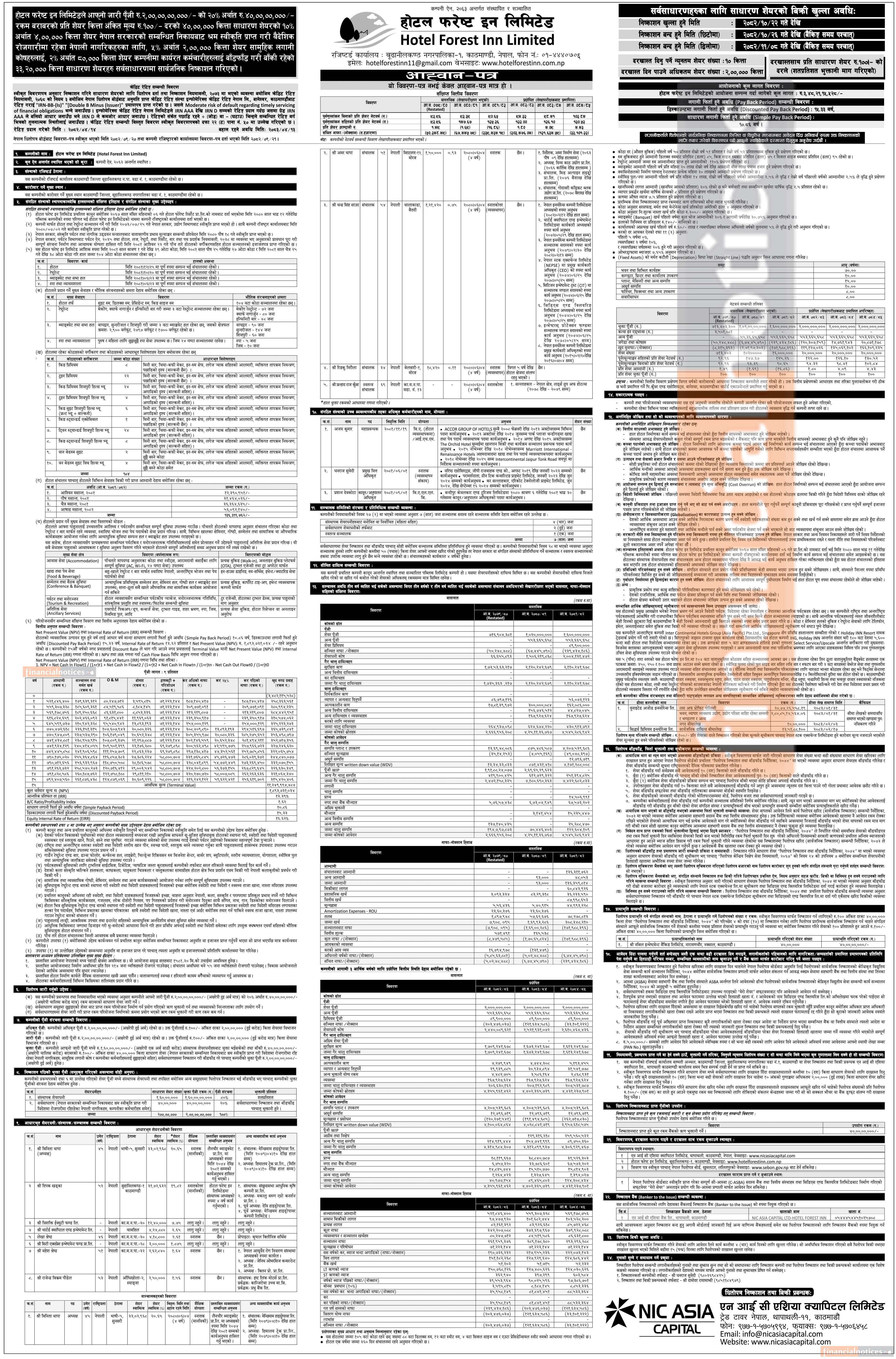 माघ २२ गतेदेखि होटल फरेष्ट इनले सर्वसाधारणका लागि आईपीओ निष्काशन गर्ने बारे सूचना
