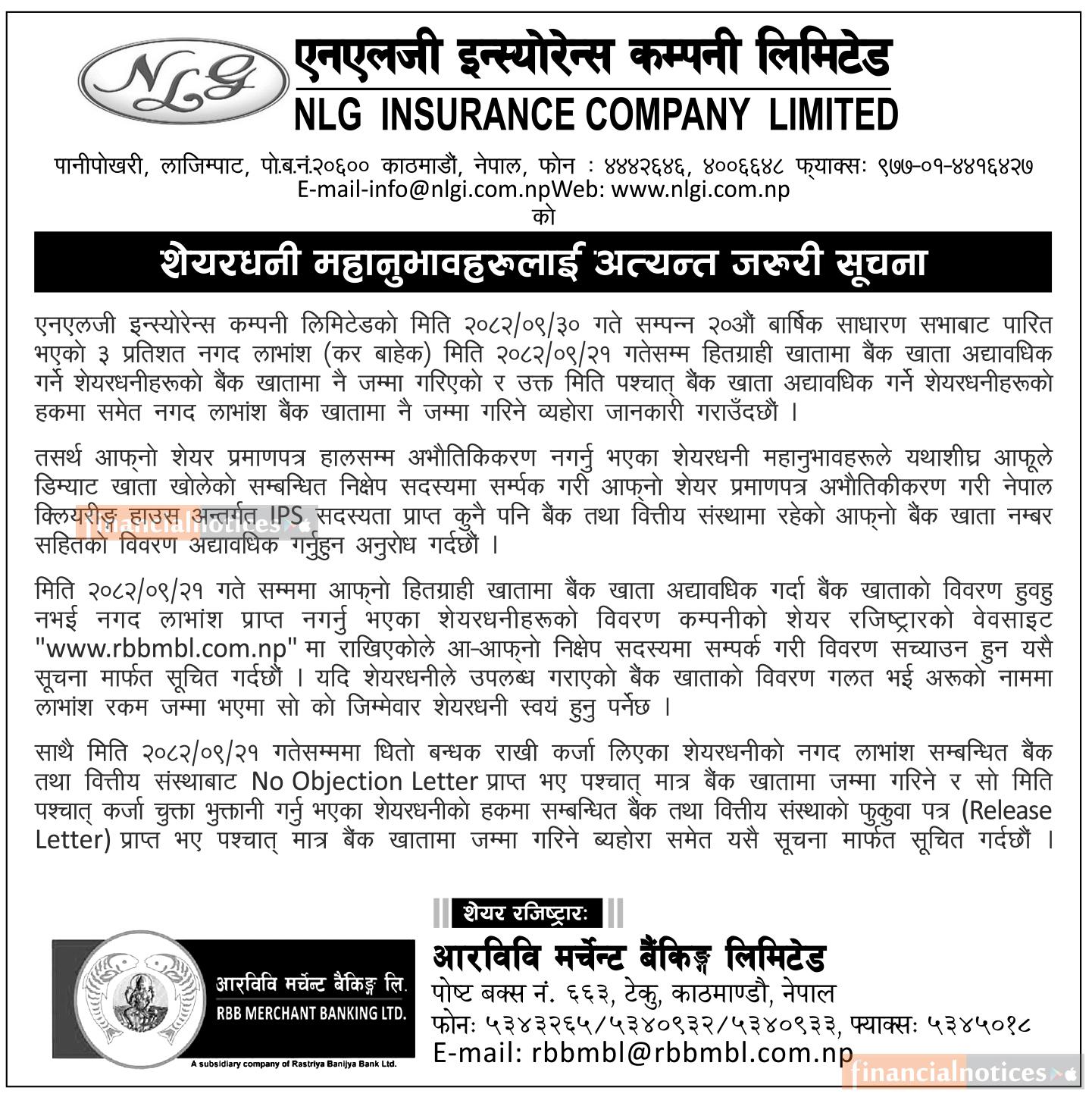 एनएलजी इन्स्योरेन्सको शेयरधनीहरुलाई अत्यन्त जरुरी सूचना
