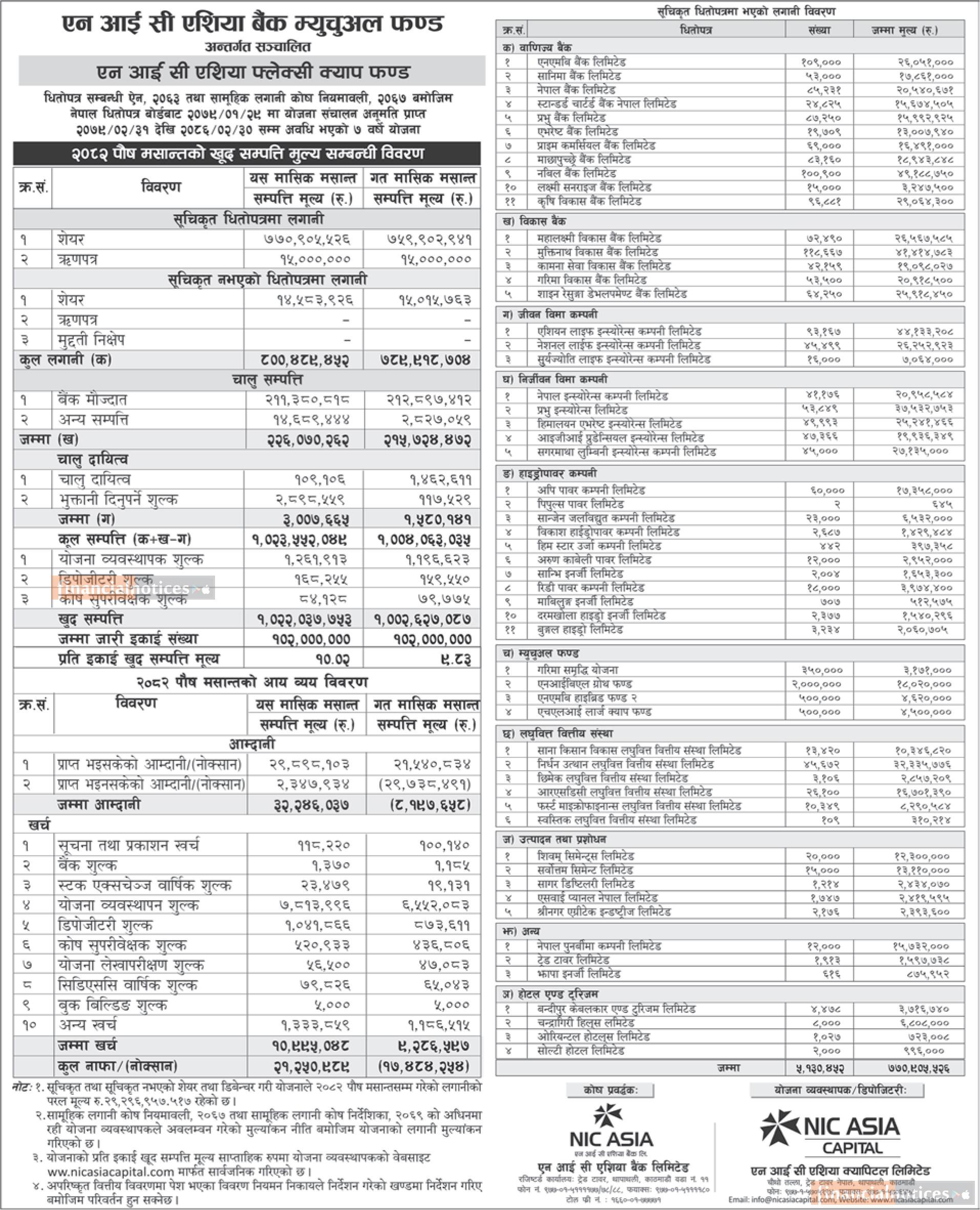 NIC Asia Capital has published "NIC Asia Flexi Cap Fund" Net Assets Value till Poush, 2082