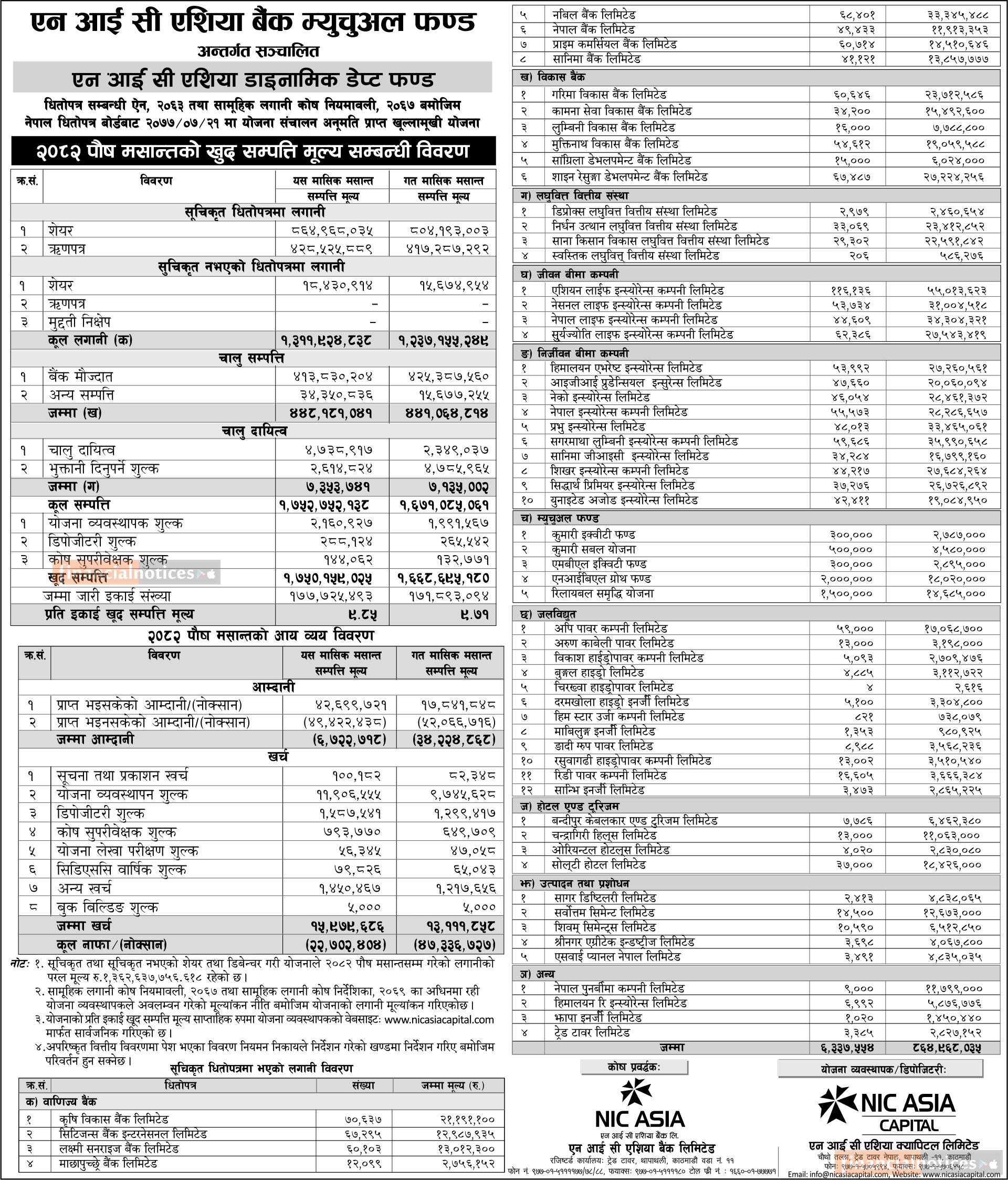 NIC Asia Capital has published "NIC Asia Dynamic Debt Fund" Net Assets Value till Poush, 2082