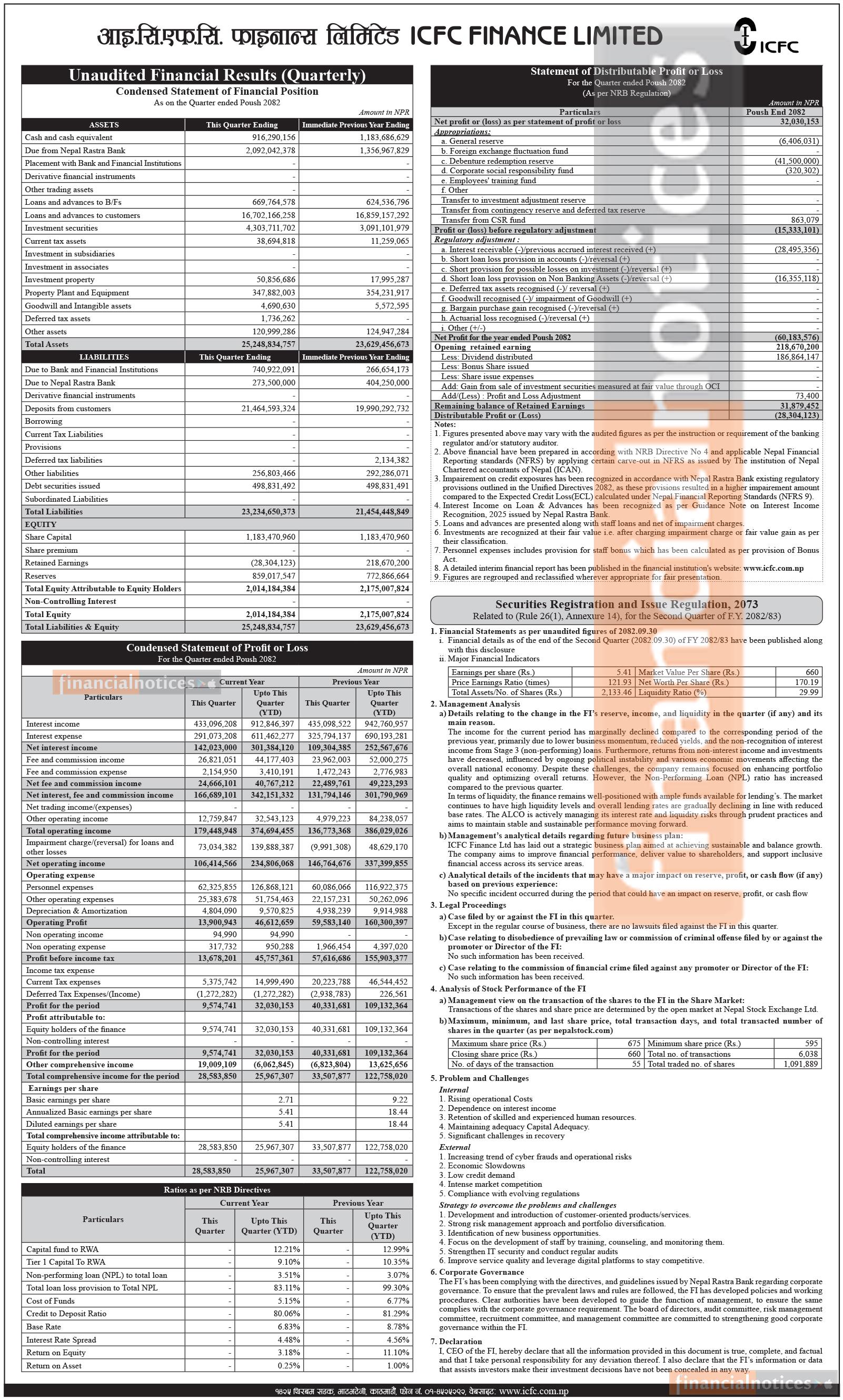 ICFC Finance Limited has posted a net profit of Rs 32.03 million and published its 2nd quarter