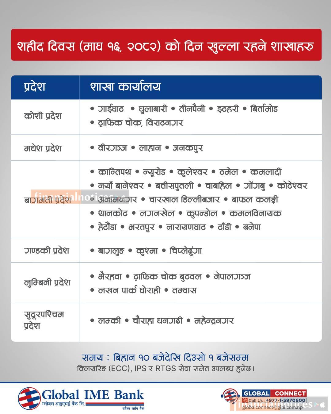 शहीद दिवसको दिन शाखाहरु खुल्ला रहने सम्बन्धी सूचना