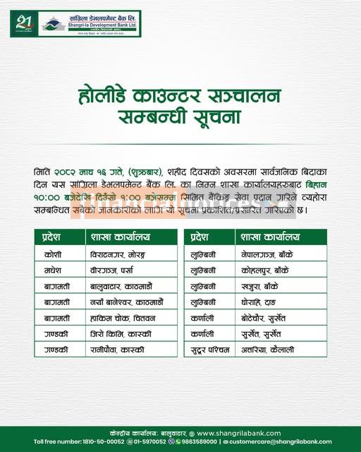 Published by Shangri-la Dev. Bank on 2082-10-16