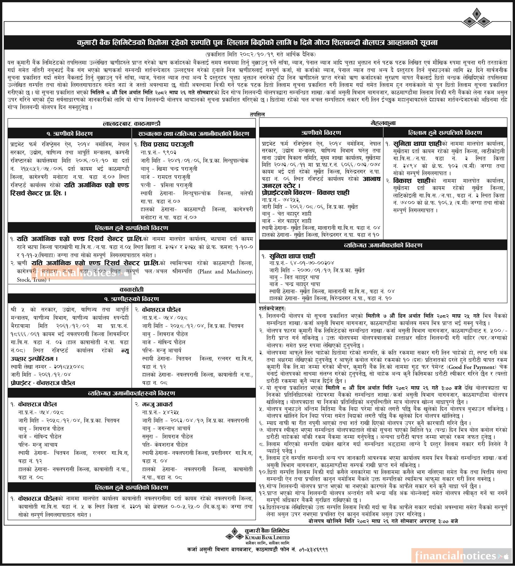 Published by Kumari Bank Ltd (KBL) on 2082-10-19