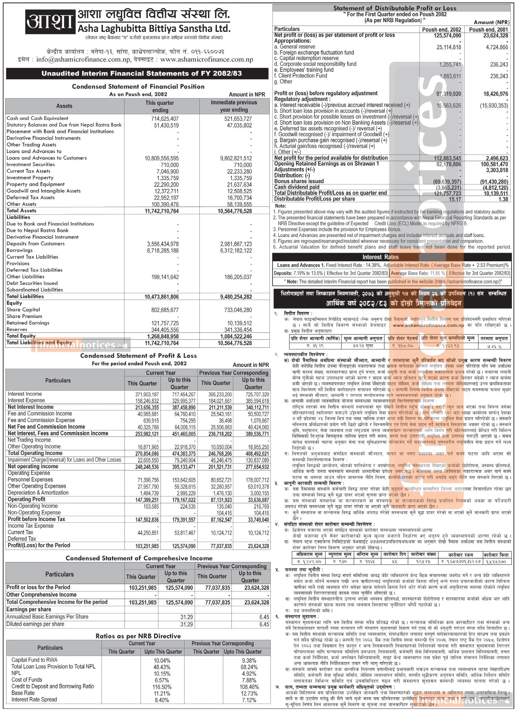 आशा लघुवित्तको वित्तीय विवरण प्रकाशित, खुद नाफा १२ करोड ५५ लाख रुपैयाँ - Q2 Report -