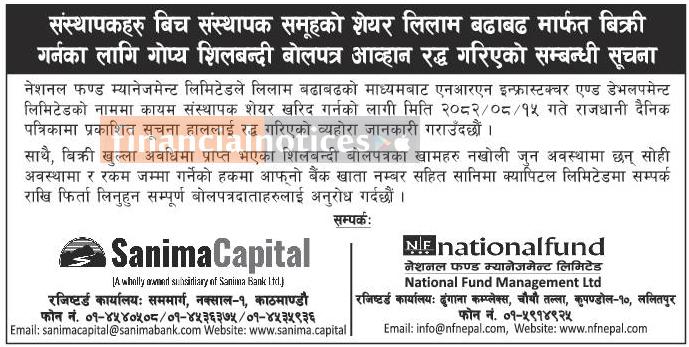 संस्थापक र पूर्व संस्थापक समूहको शेयर लिलाम बिक्रीबारे सार्वजनिक सूचना