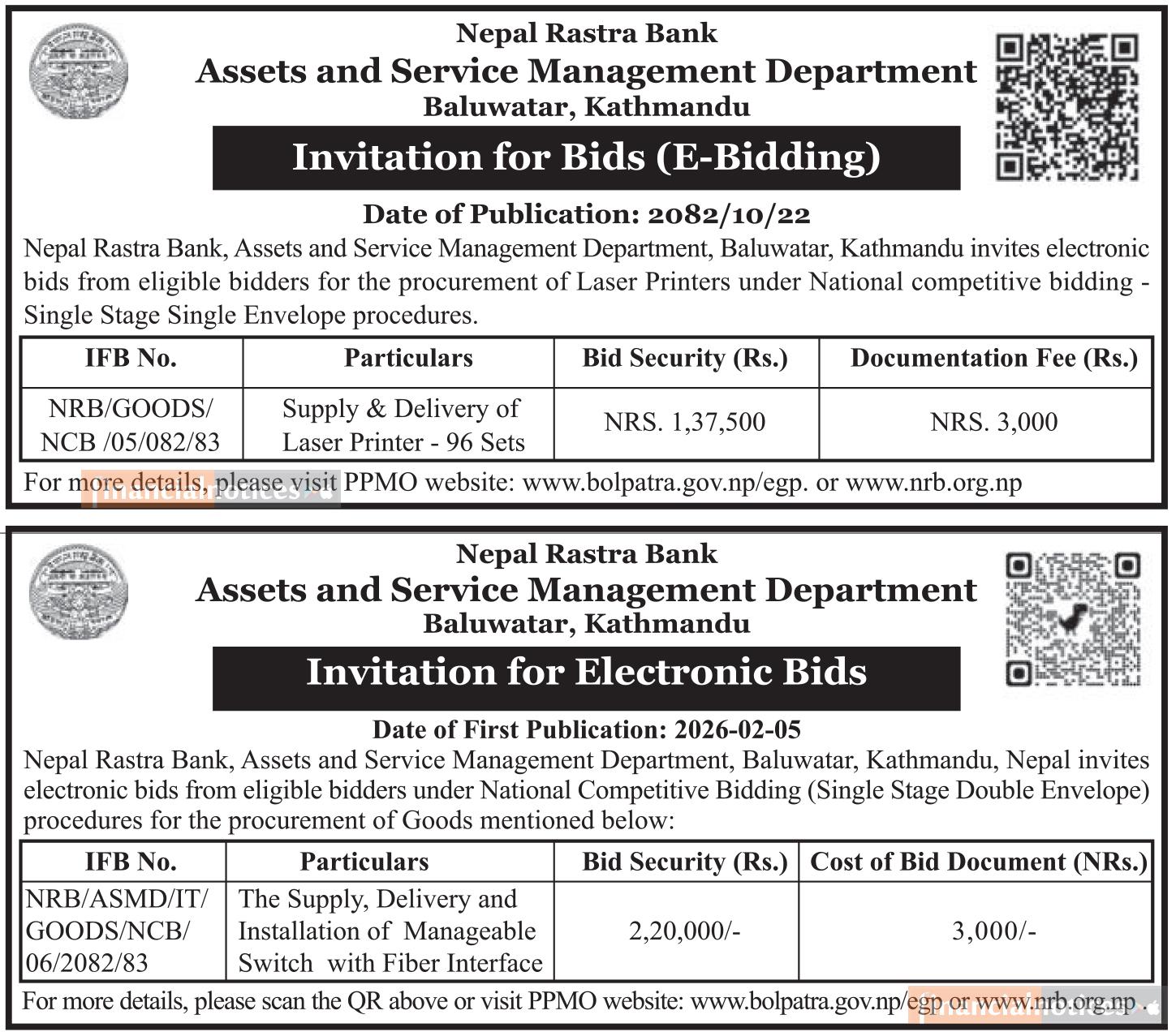 शिलबन्दी बोलपत्र आव्हान सम्बन्धी १५ दिने सूचना