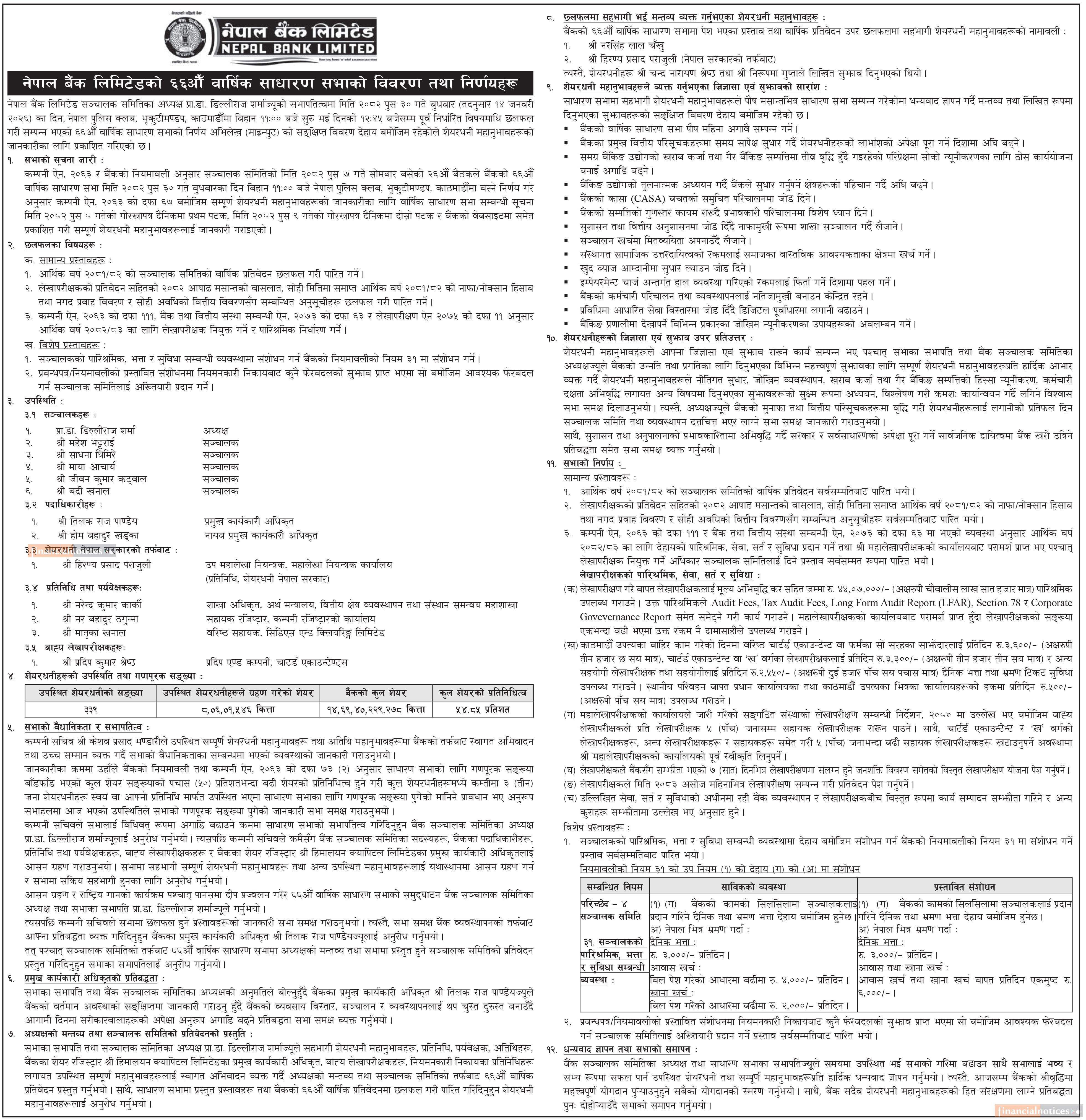 ६६औँ वार्षिक साधारण सभाको विवरण तथा निर्णयहरु सम्बन्धी सूचना