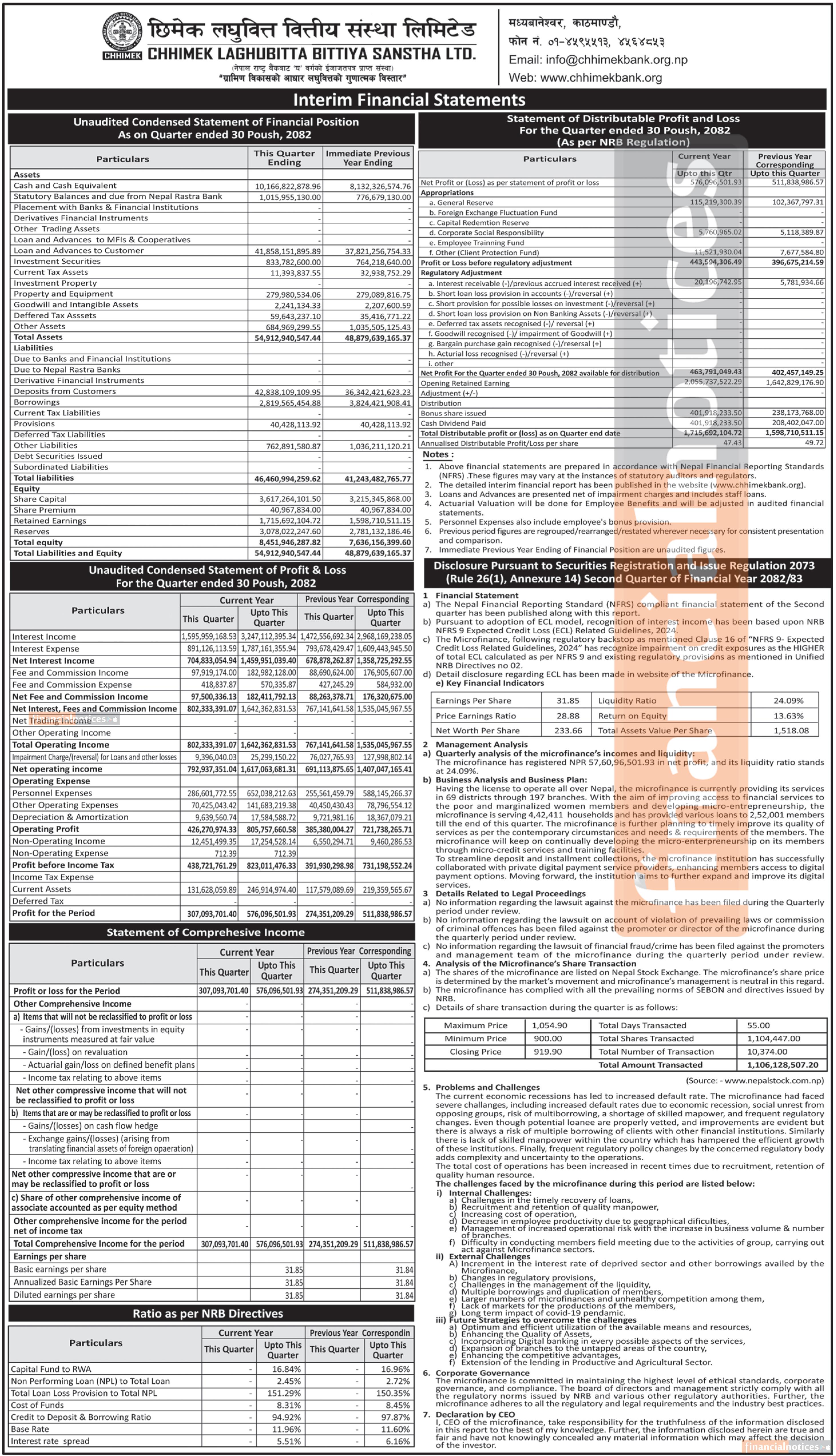 छिमेक लघुवित्तको वित्तीय विवरण प्रकाशित, खुद नाफा ५१ करोड १८ लाख रुपैयाँ - Q2 Report -