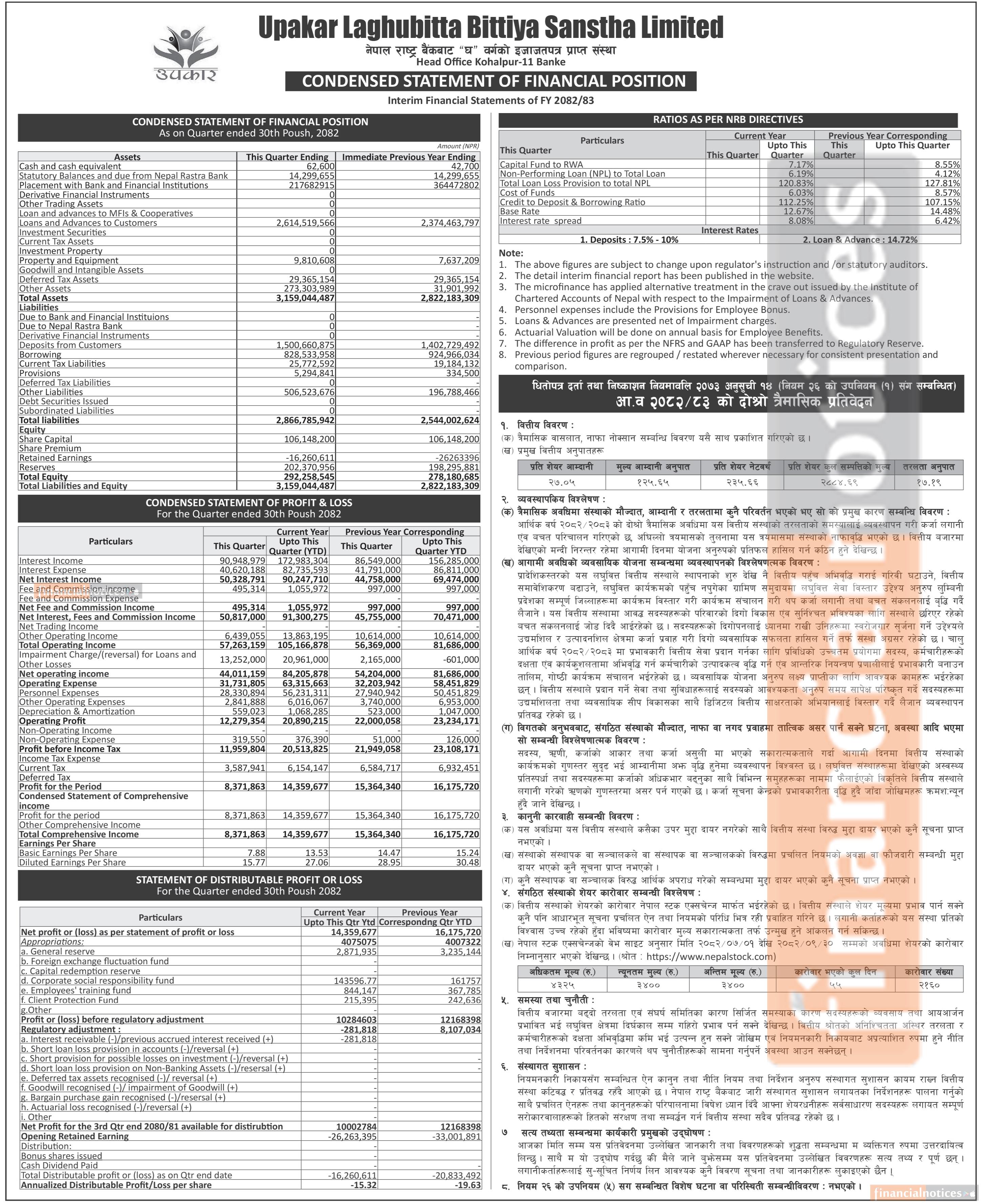 Upakar Laghubitta has posted a net profit of Rs 14.35 million and published its 2nd quarter