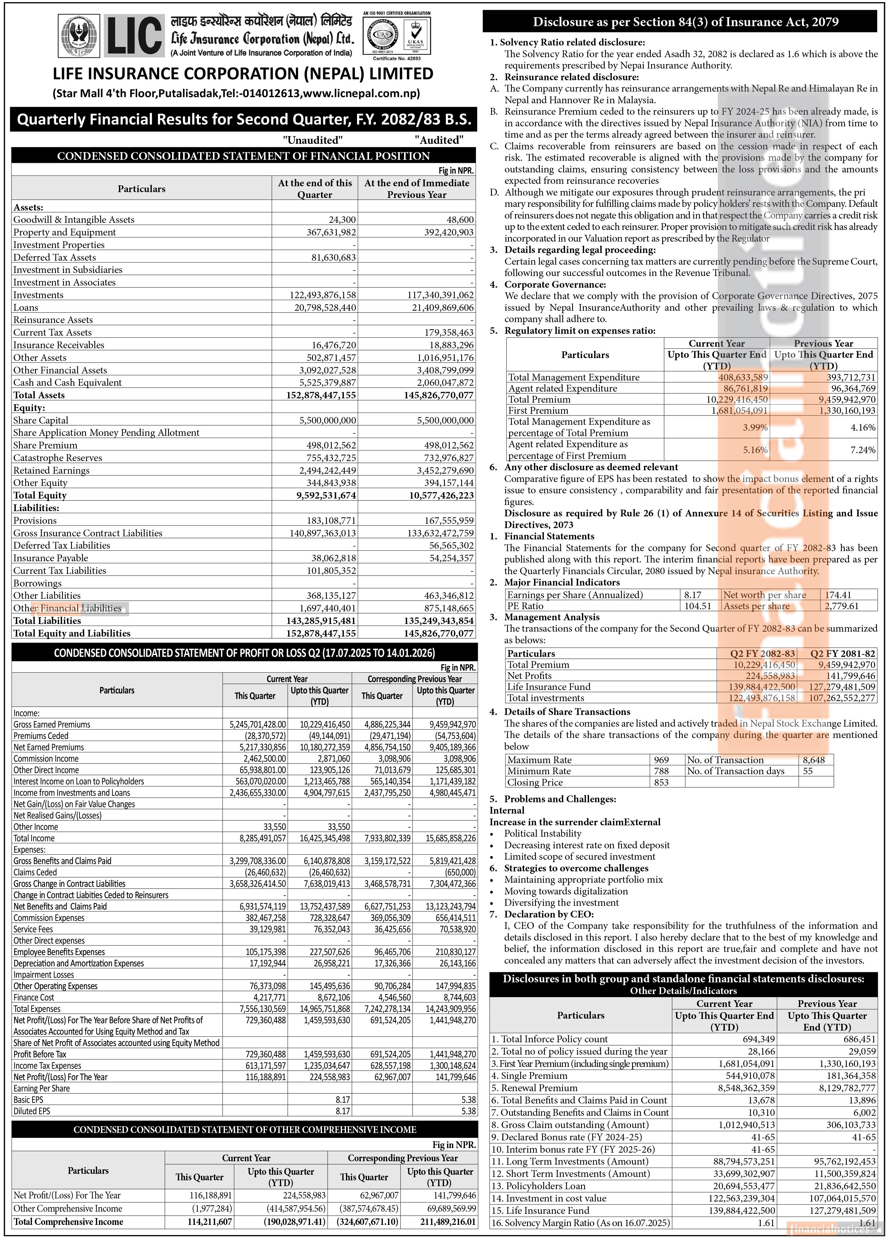 एलआईसी नेपालको ५८.३६%ले बढ्यो नाफा, जीवन बीमा कोष रु. १ खर्ब ३९ अर्ब माथि