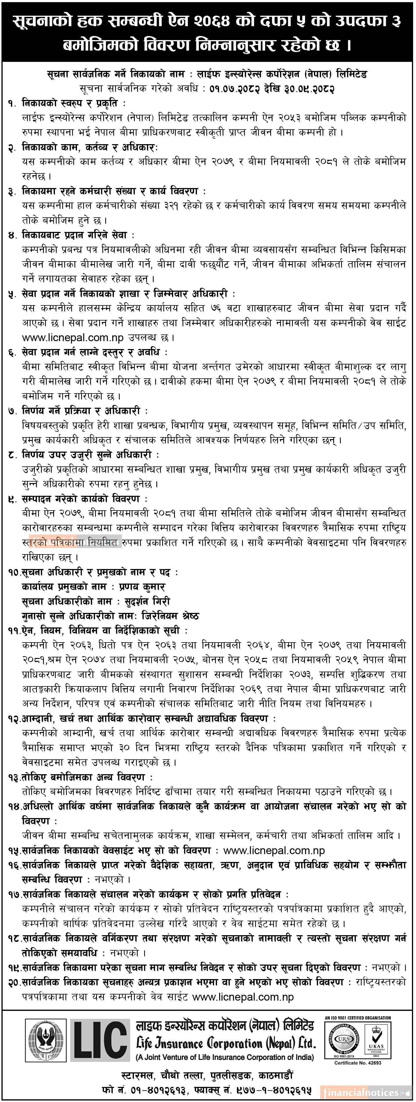 लाइफ इन्स्योरेन्स कर्पोरेशन सूचनाको हक सम्बन्धी सूचना