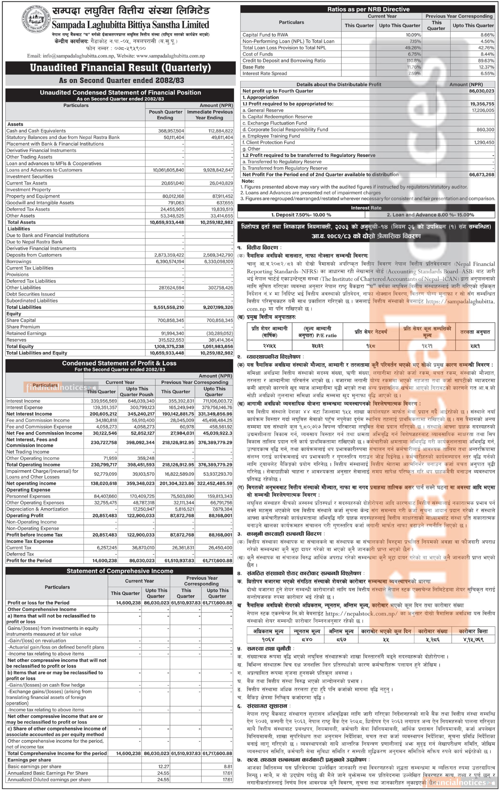 Sampada Laghubitta has posted a net profit of Rs 86.03 million and published its Q2