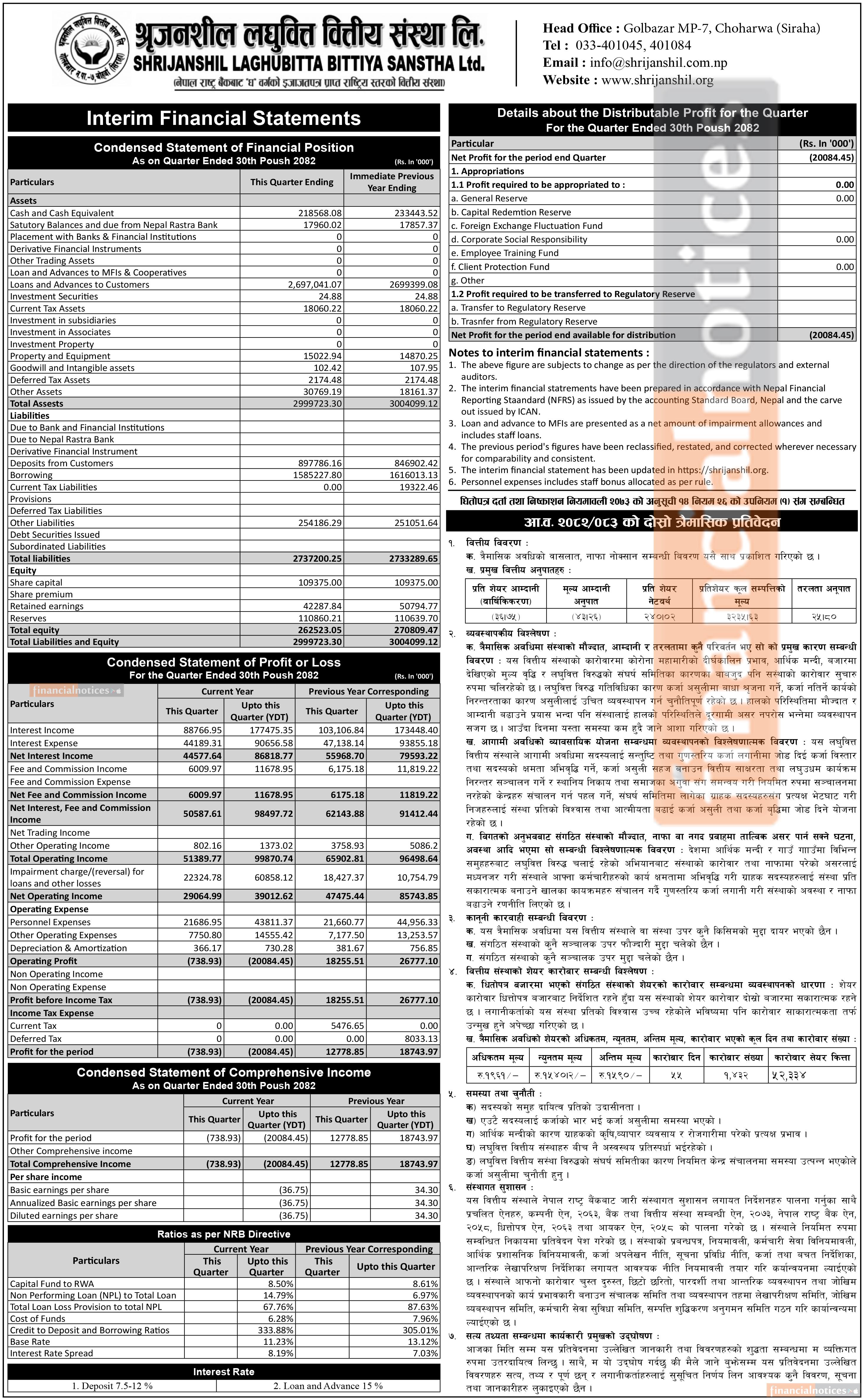 श्रृजनशील लघुवित्तको चालु आर्थिक वर्ष २०८२/८३ को दोस्रो त्रैमासमा खुद घाटा २ करोड रुपैयाँ
