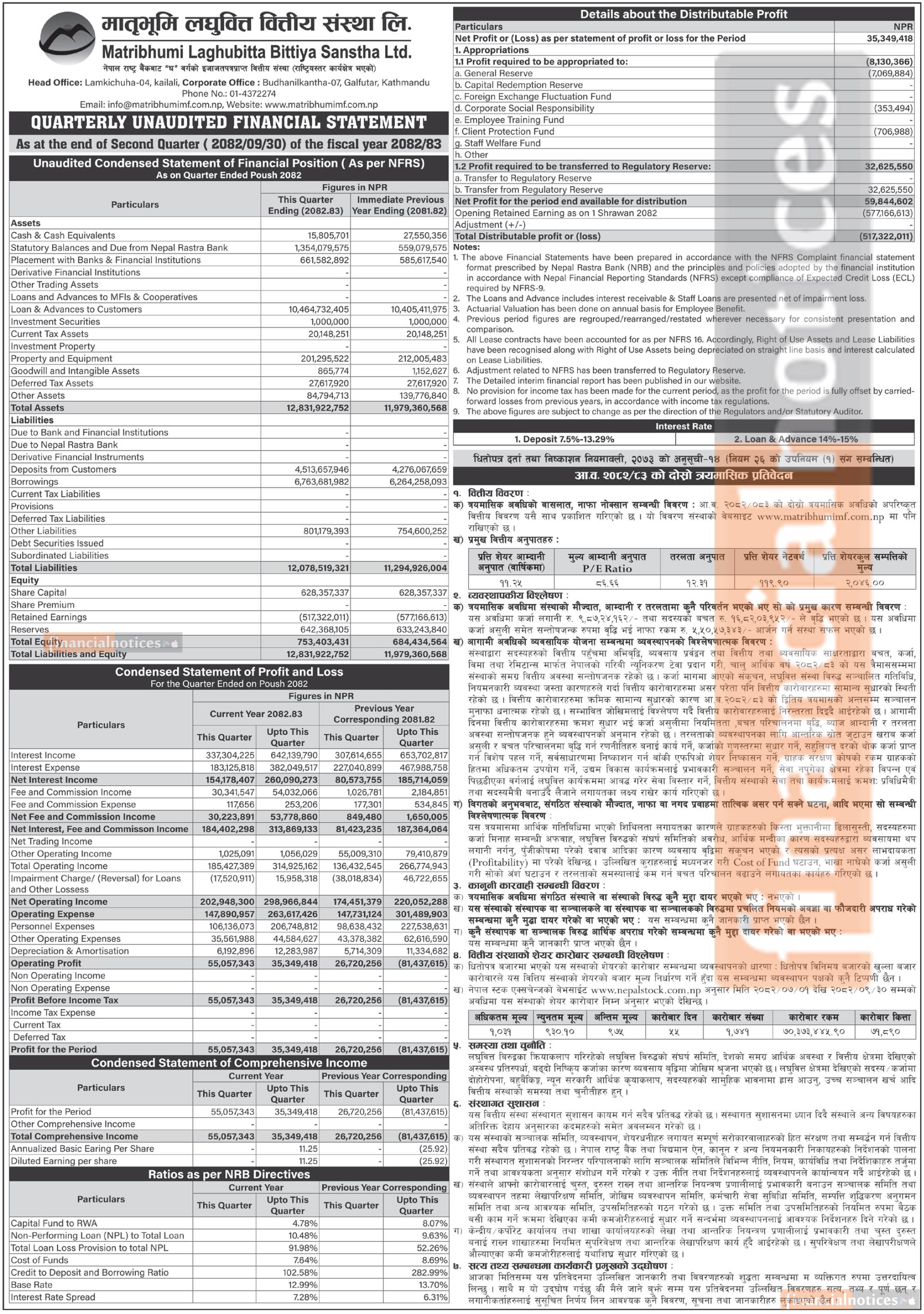 मातृभूमि लघुवित्तको चालु आर्थिक वर्ष २०८२/८३ को दोस्रो त्रैमासमा खुद नाफा ३ करोड ५३ लाख रुपैयाँ