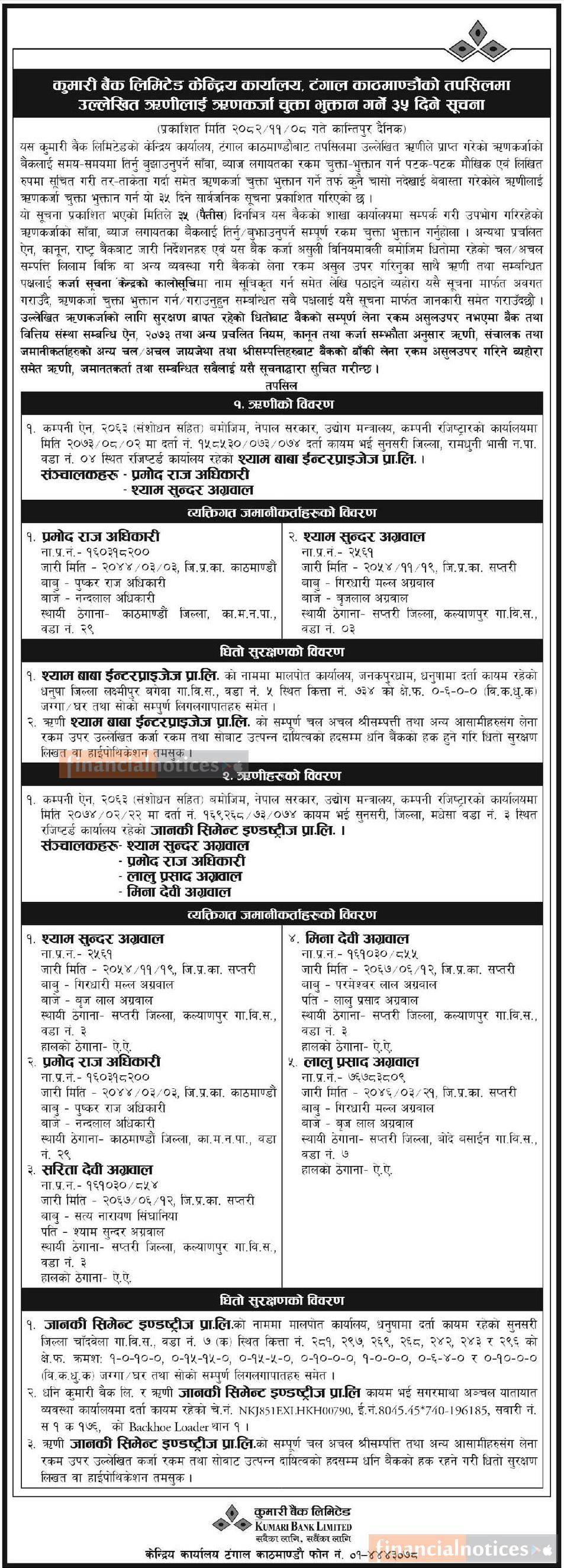 Published by Kumari Bank Ltd (KBL) on 2082-11-8