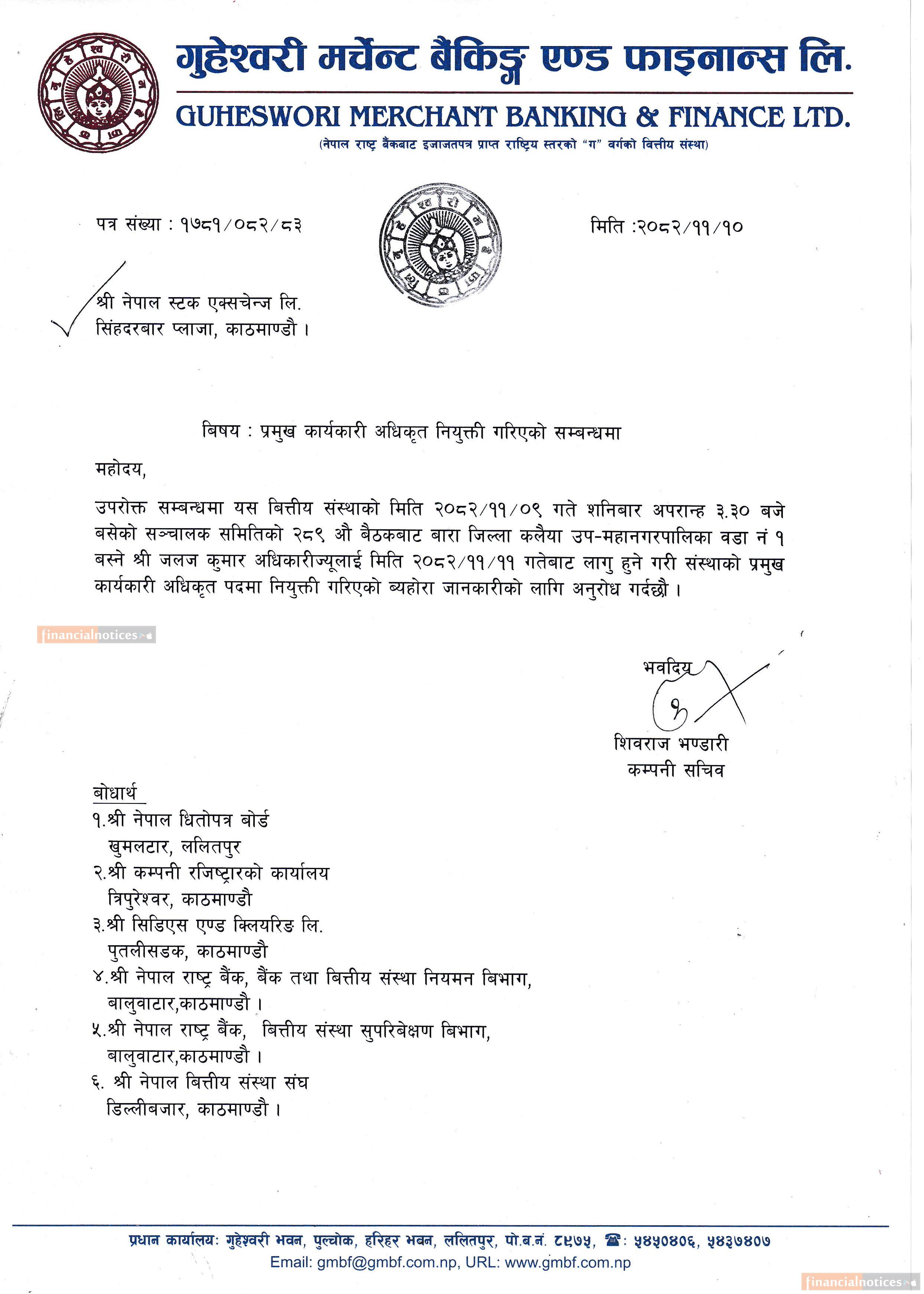 Guheshwori Merchant Banking & Finance Announces New CEO Appointment