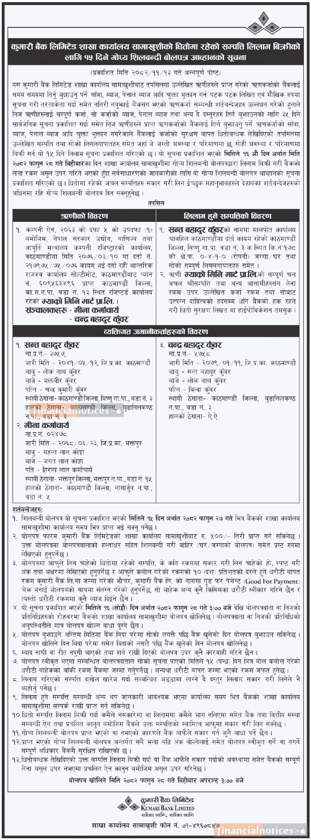 Published by Kumari Bank Ltd (KBL) on 2082-11-13