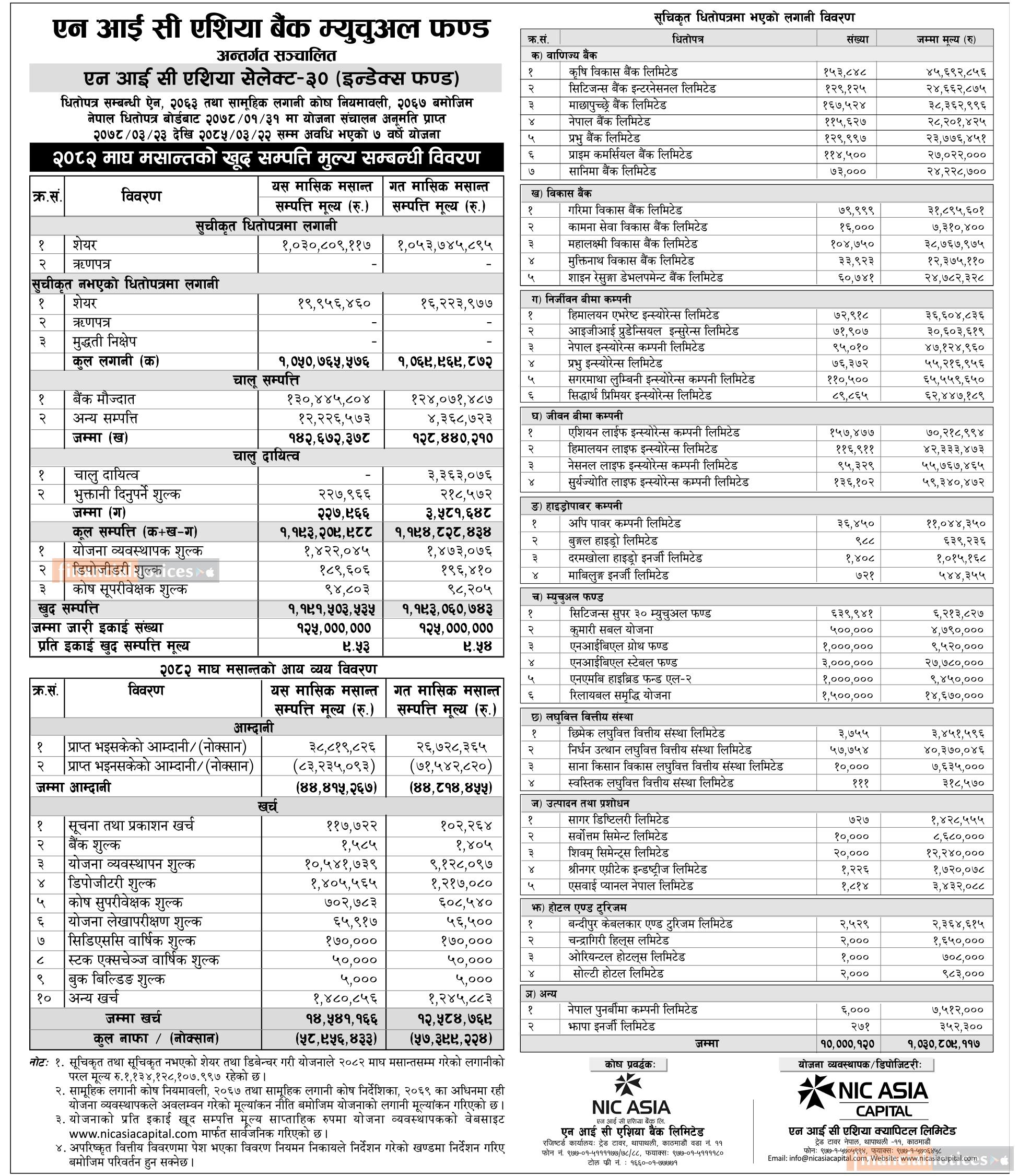 NIC Asia Capital has published "NIC Asia Select 30 (Index Fund)" Net Assets Value till Magh, 2082