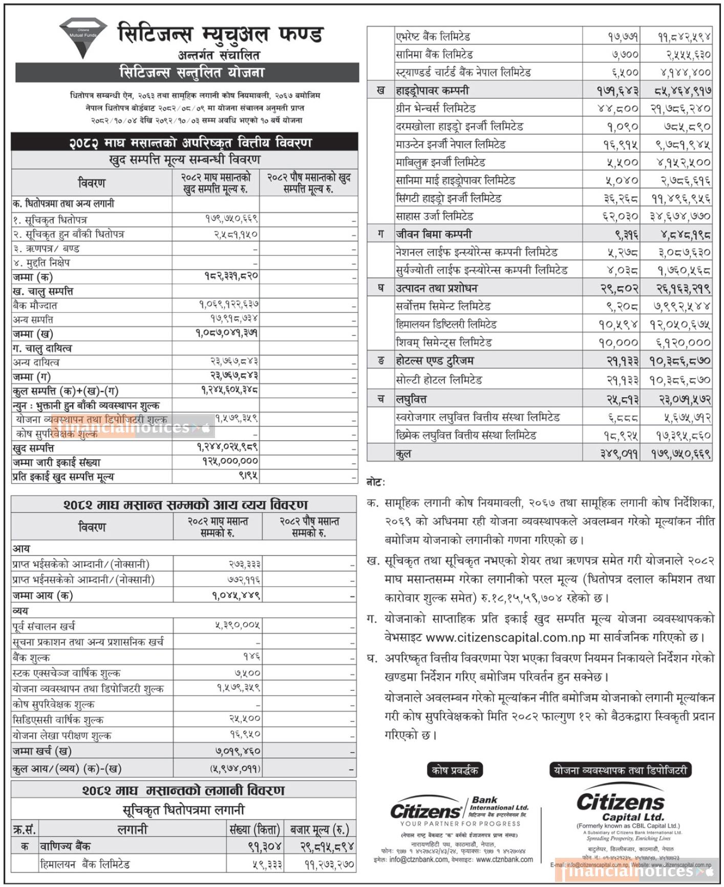 Citizens Capital Limited has published “Citizens Santulit Yojana” NAV till Magh, 2082