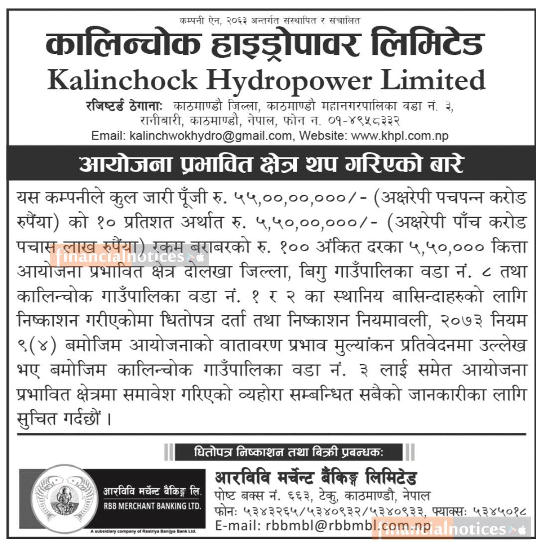 कालिन्चोक हाइड्रोपावरको आयोजना प्रभावित क्षेत्र थप गरिएको सूचना
