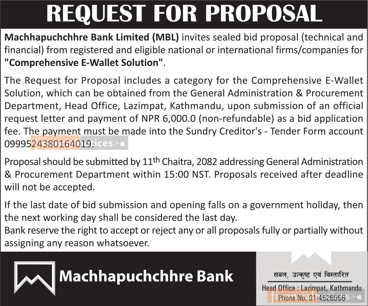 Machhapuchchhre Bank Invites Request for Proposal (RFP) from Qualified Vendors