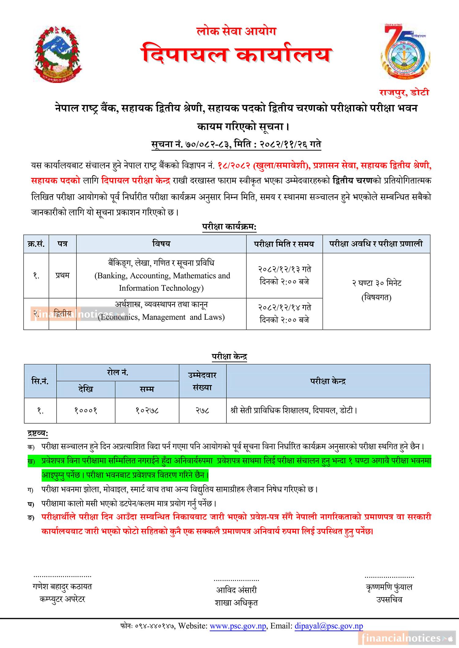 नेपाल राष्ट्र बैंक (द्वितीय श्रेणी) सहायक पदको लिखित परीक्षा केन्द्र सार्वजानिक सम्बन्धी सूचना