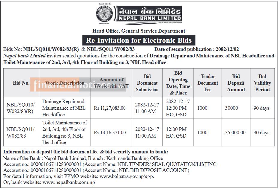 शिलबन्दी बोलपत्र आव्हान सम्बन्धी १५ दिने सूचना
