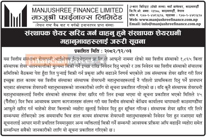 संस्थापक शेयरधनीहरूका लागि शेयर खरिद सम्बन्धी महत्वपूर्ण सूचना