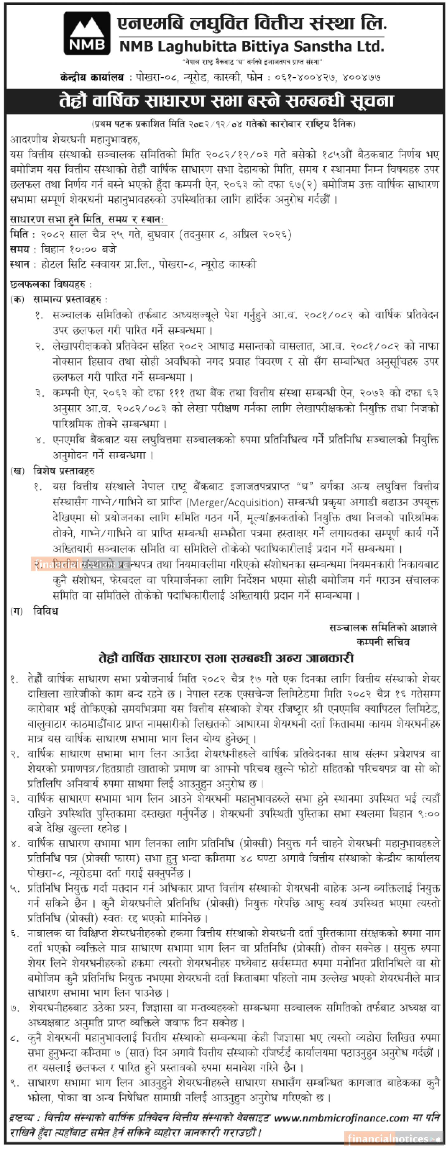 तेह्रौँ वार्षिक साधारण सभा सम्बन्धी सूचना