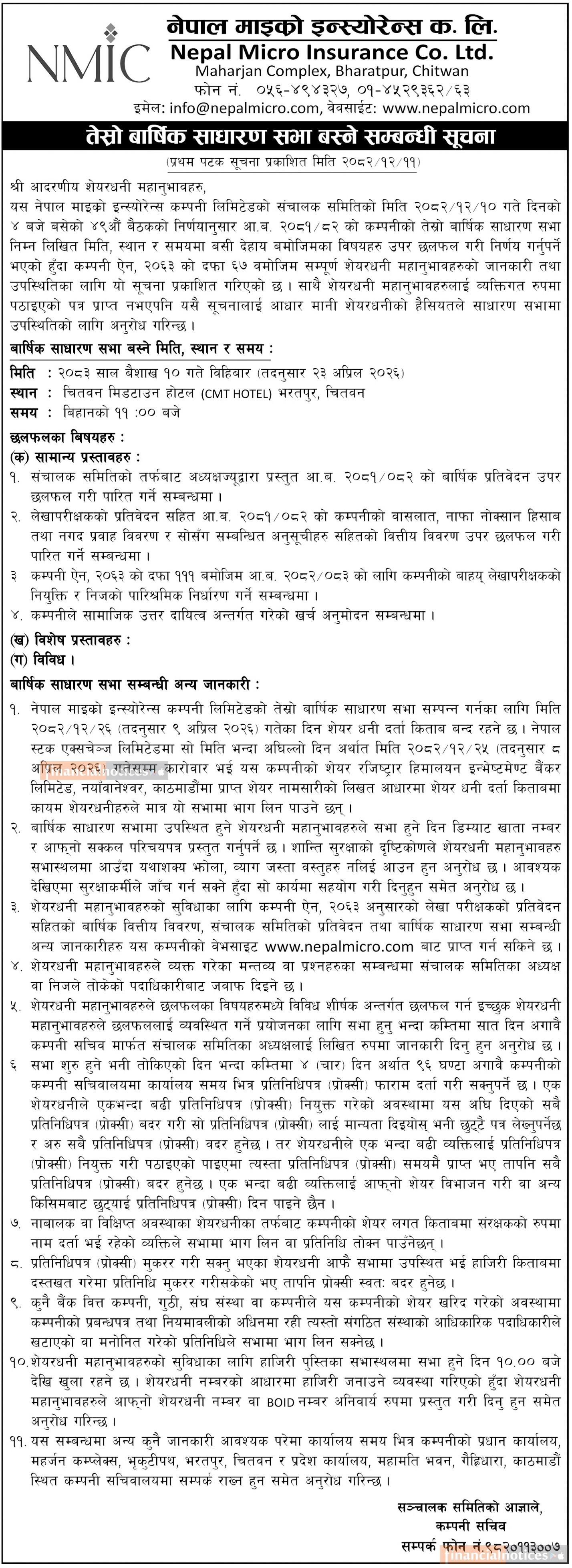 Published by Nepal Micro Insurance Company Limited (NMIC) on 2082-12-11