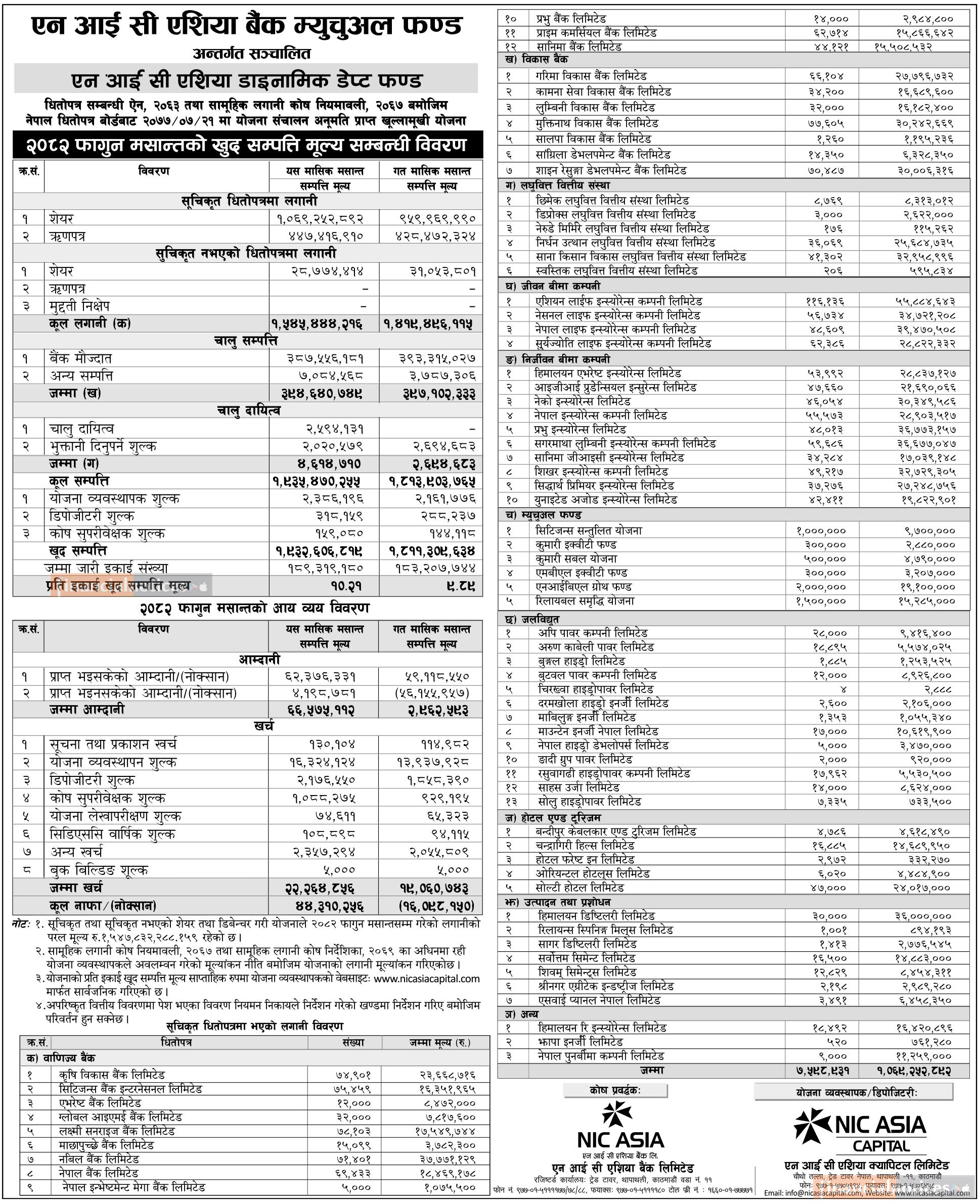 NIC Asia Capital has published "NIC Asia Dynamic Debt Fund" Net Assets Value till Falgun, 2082