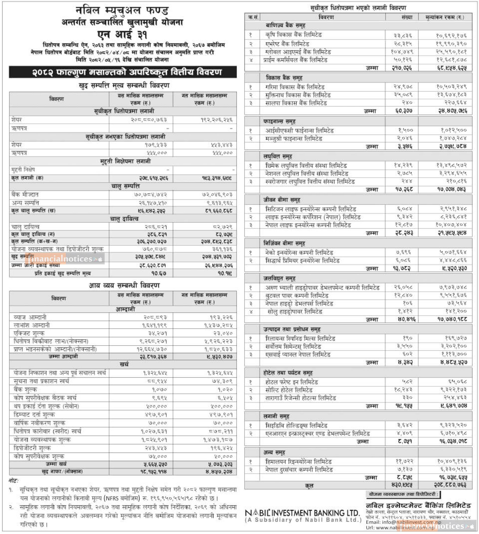 Nabil Investment Banking Limited has published "NI 31" Net Assets Value till Falgun, 2082