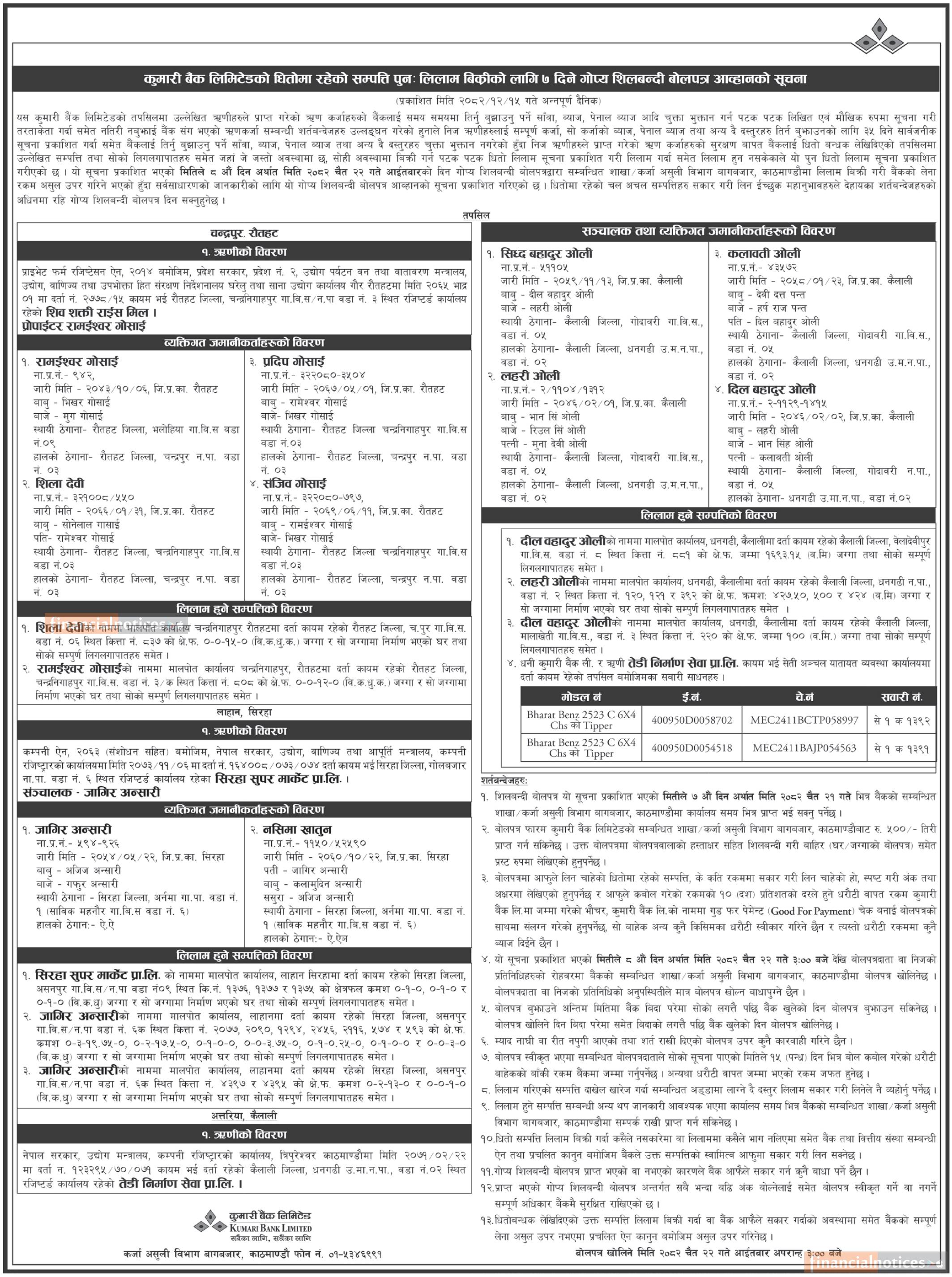 Kumari Bank Auction Notice for Non-Banking Assets at Mahendranagar, Kanchanpur -