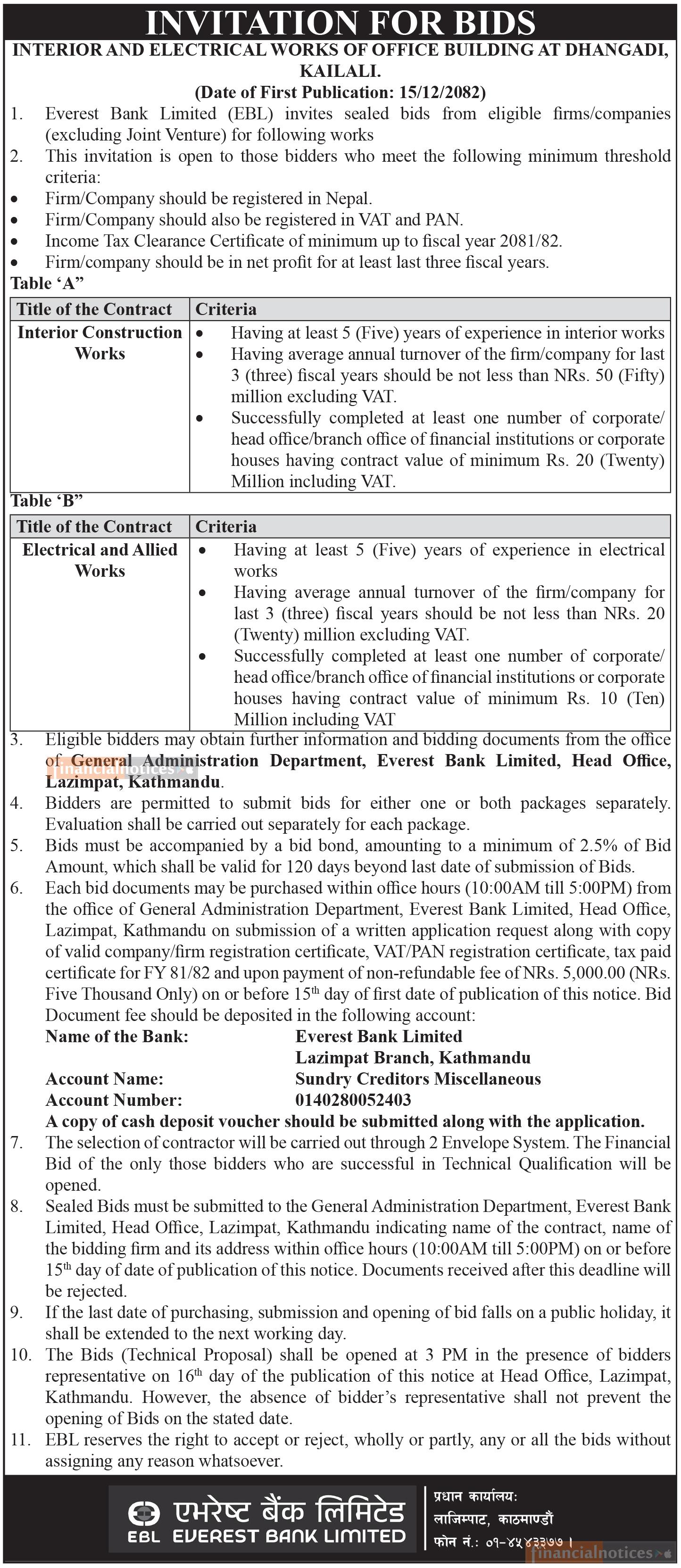शिलबन्दी बोलपत्र आव्हान सम्बन्धी १५ दिने सूचना