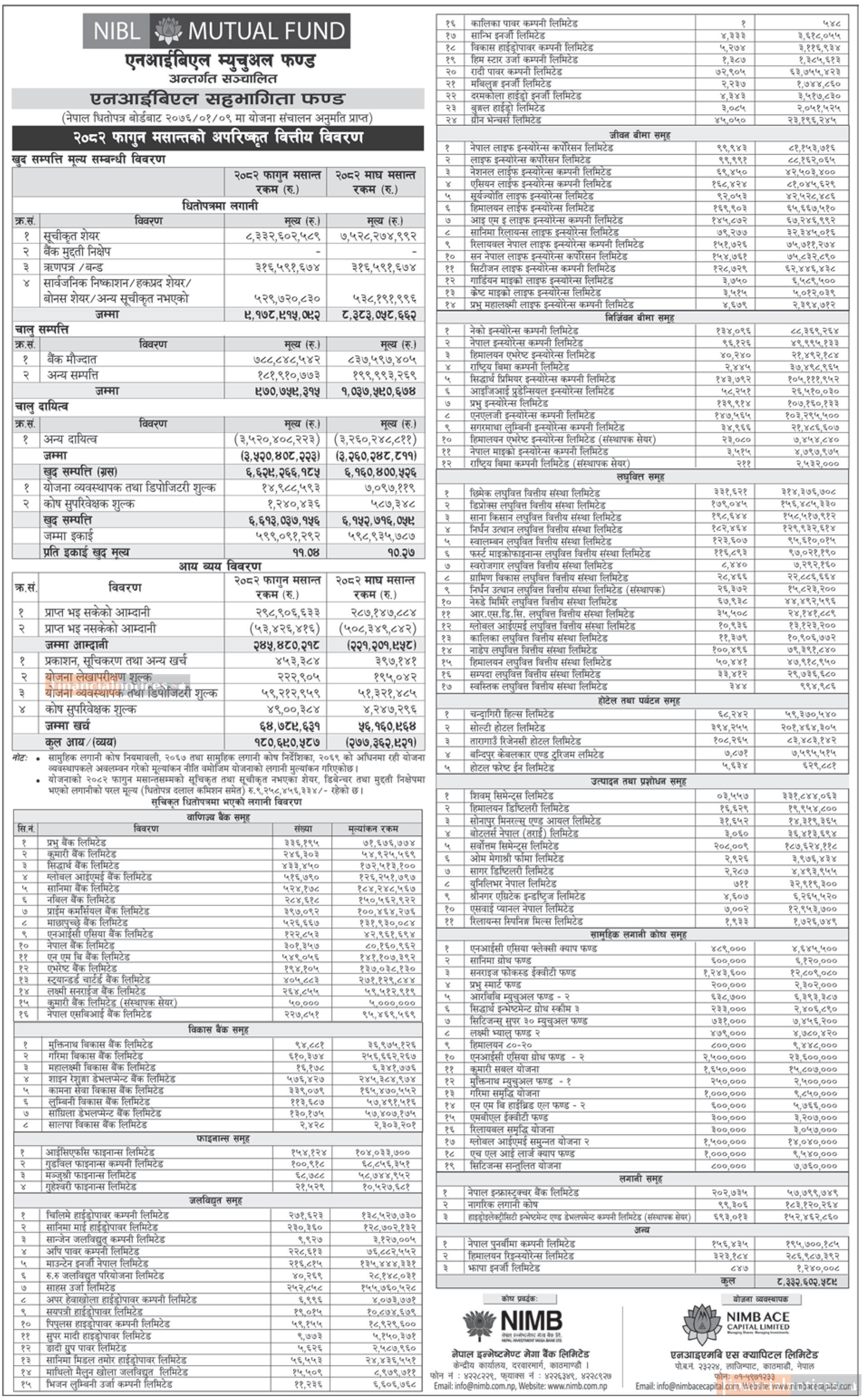 NIMB Ace Capital Publishes NAV of “NIBL Sahabhagita Fund” Till Falgun 2082 -