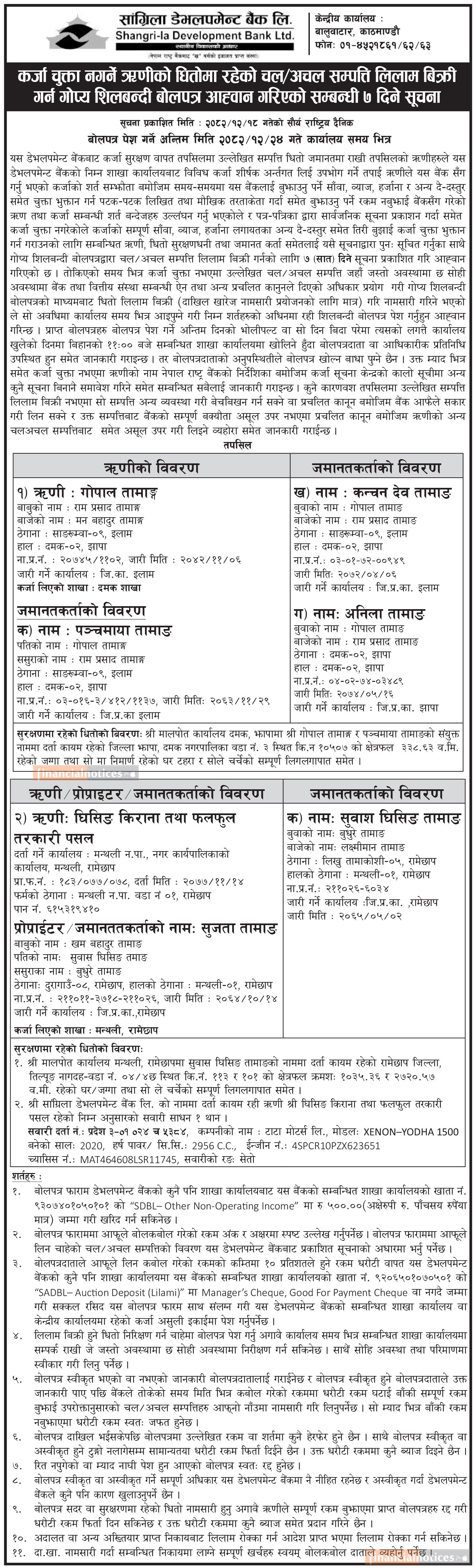 Published by Shangri-la Dev. Bank on 2082-12-18