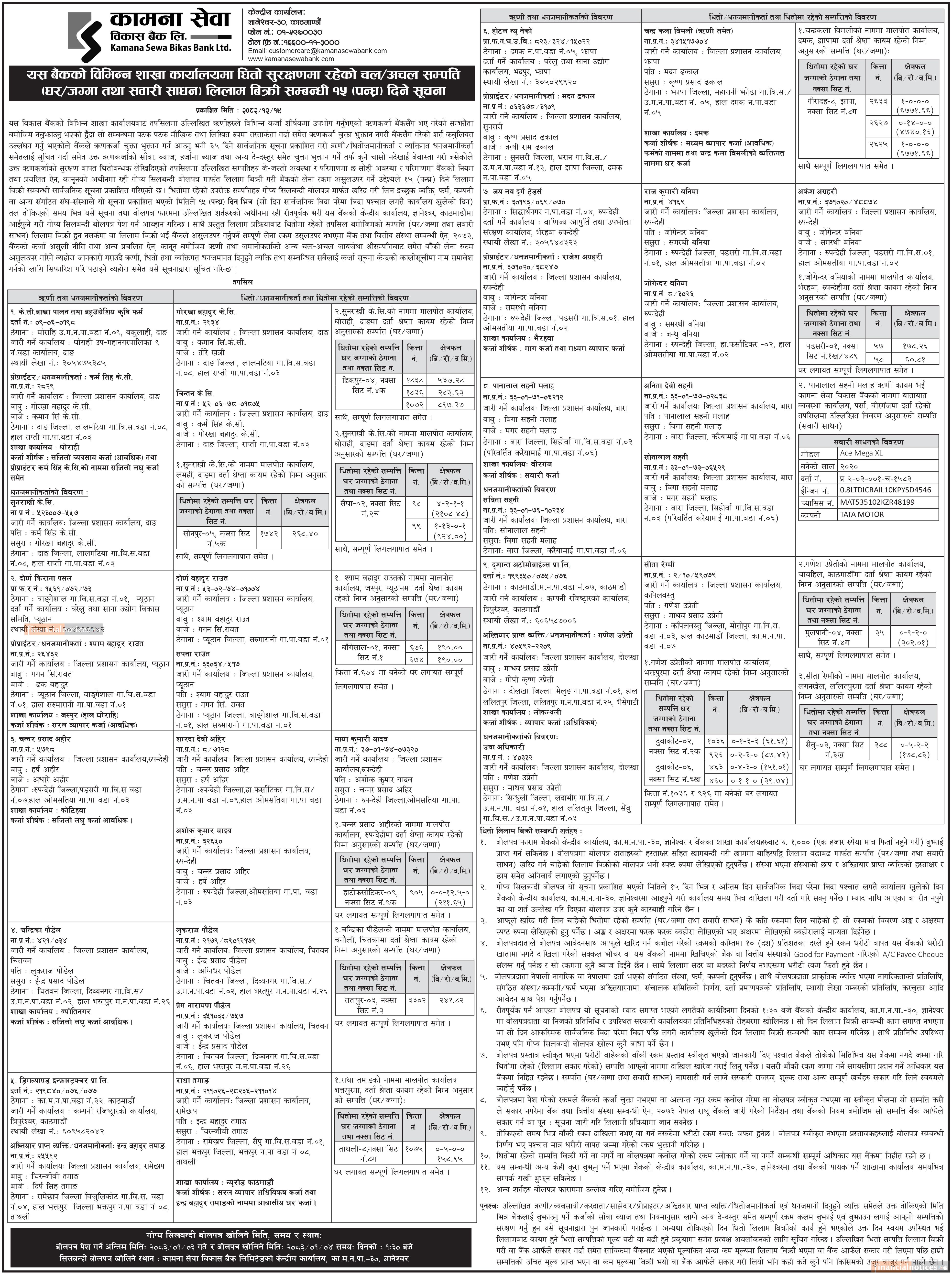 Kumari Bank Auction Notice for Non-Banking Assets at Mahendranagar, Kanchanpur -