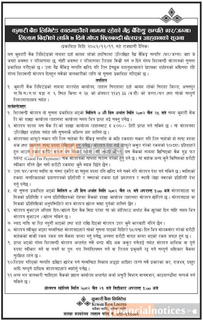 Published by Kumari Bank Ltd (KBL) on 2082-12-19