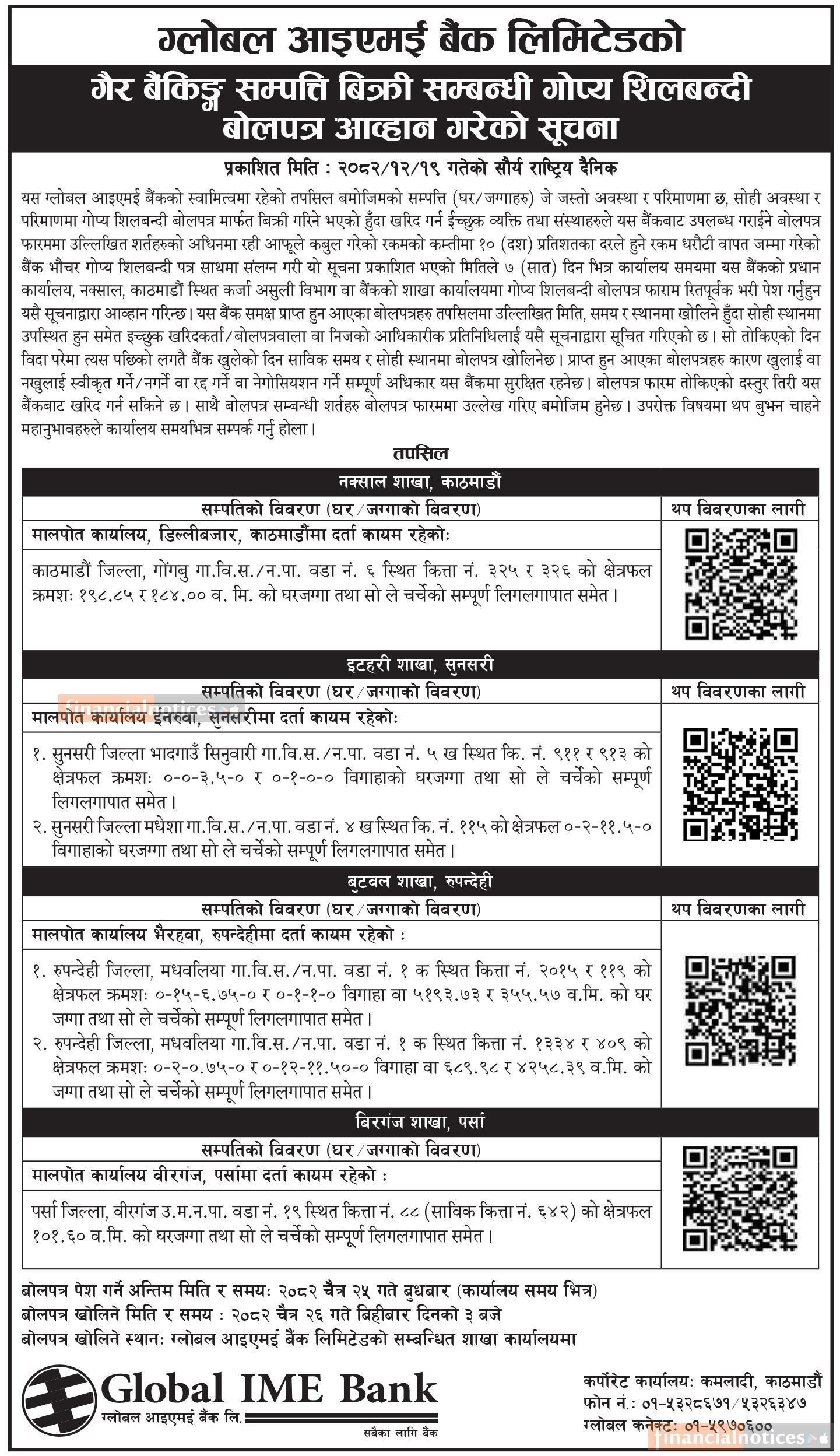 Kumari Bank Auction Notice for Non-Banking Assets at Mahendranagar, Kanchanpur -