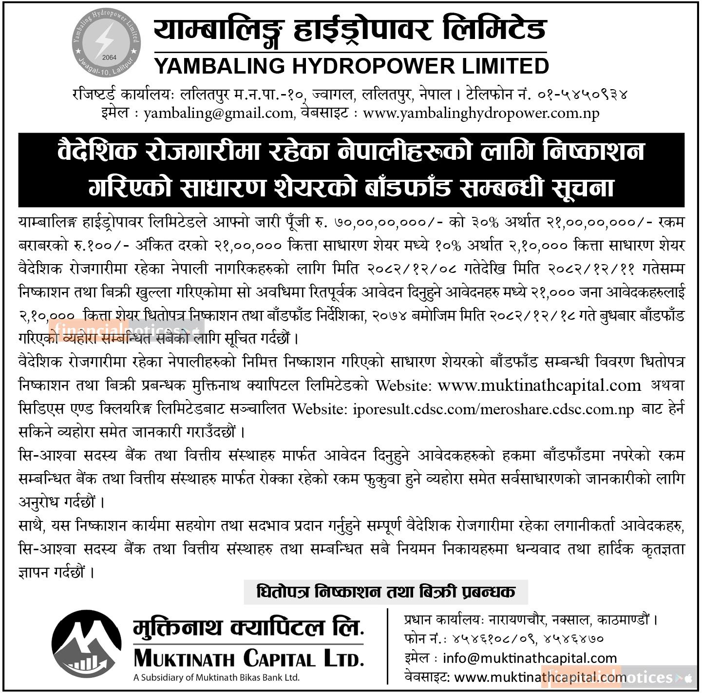 याम्बालिङ हाइड्रोपावरको आईपीओ बाँडफाँड सम्पन्न, २१ हजार आवेदकलाई शेयर