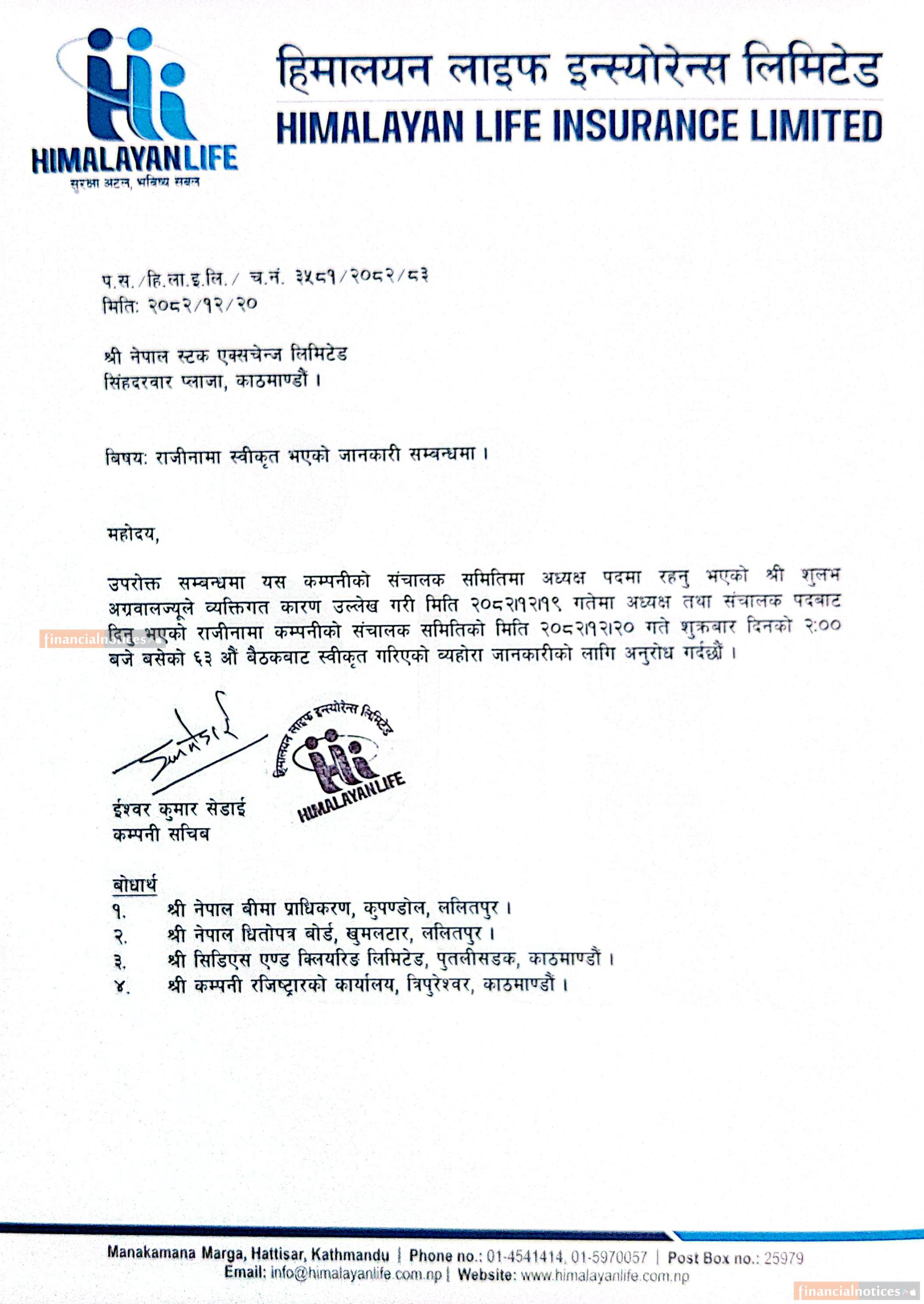 Published by Himalayan Life Insurance Limited on 2082-12-22